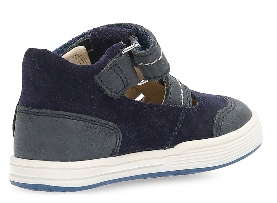 Παιδικά δερμάτινα παπουτσοπέδιλα,σε μπλε χρώμα με γκρι&ταμπά λεπτομέρειες.
