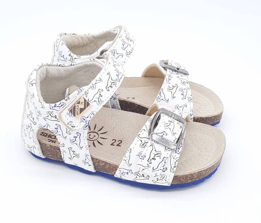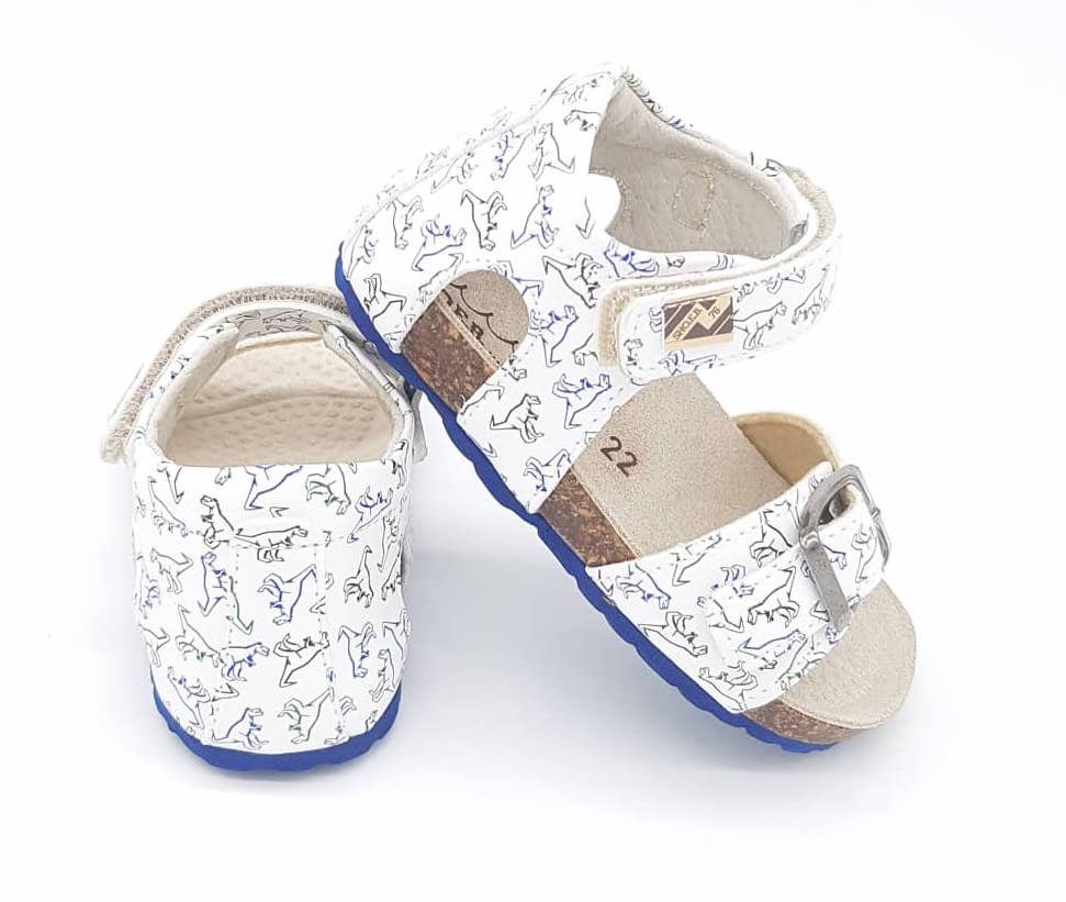Παιδικά αγορίστικα πέδιλα,σε στυλ σκαφάκι,σε λευκό χρώμα,με σχέδιο δεινοσαυράκια.