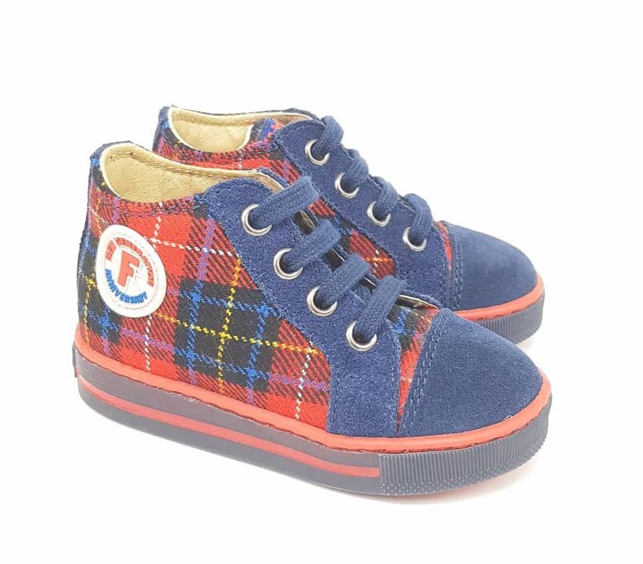 Παιδικά δερμάτινα καλοκαιρινά μποτάκια σε μπλε-κόκκινο χρώμα,και υπέροχο καρό σχέδιο.