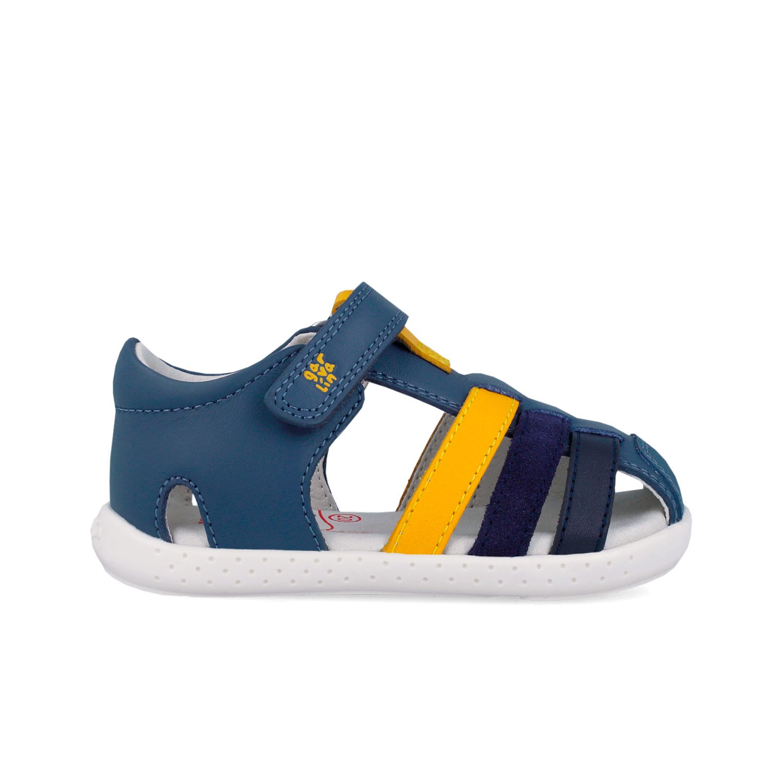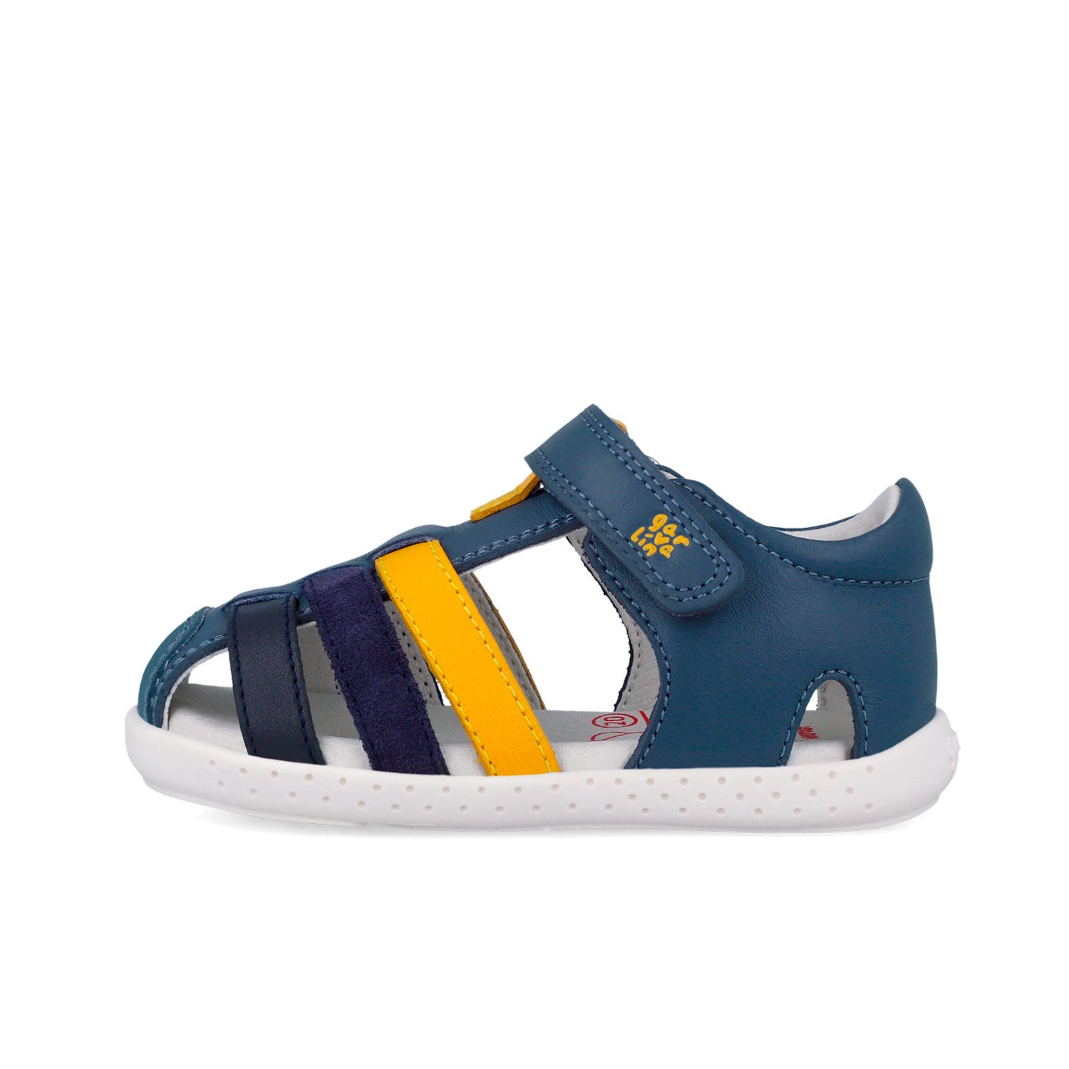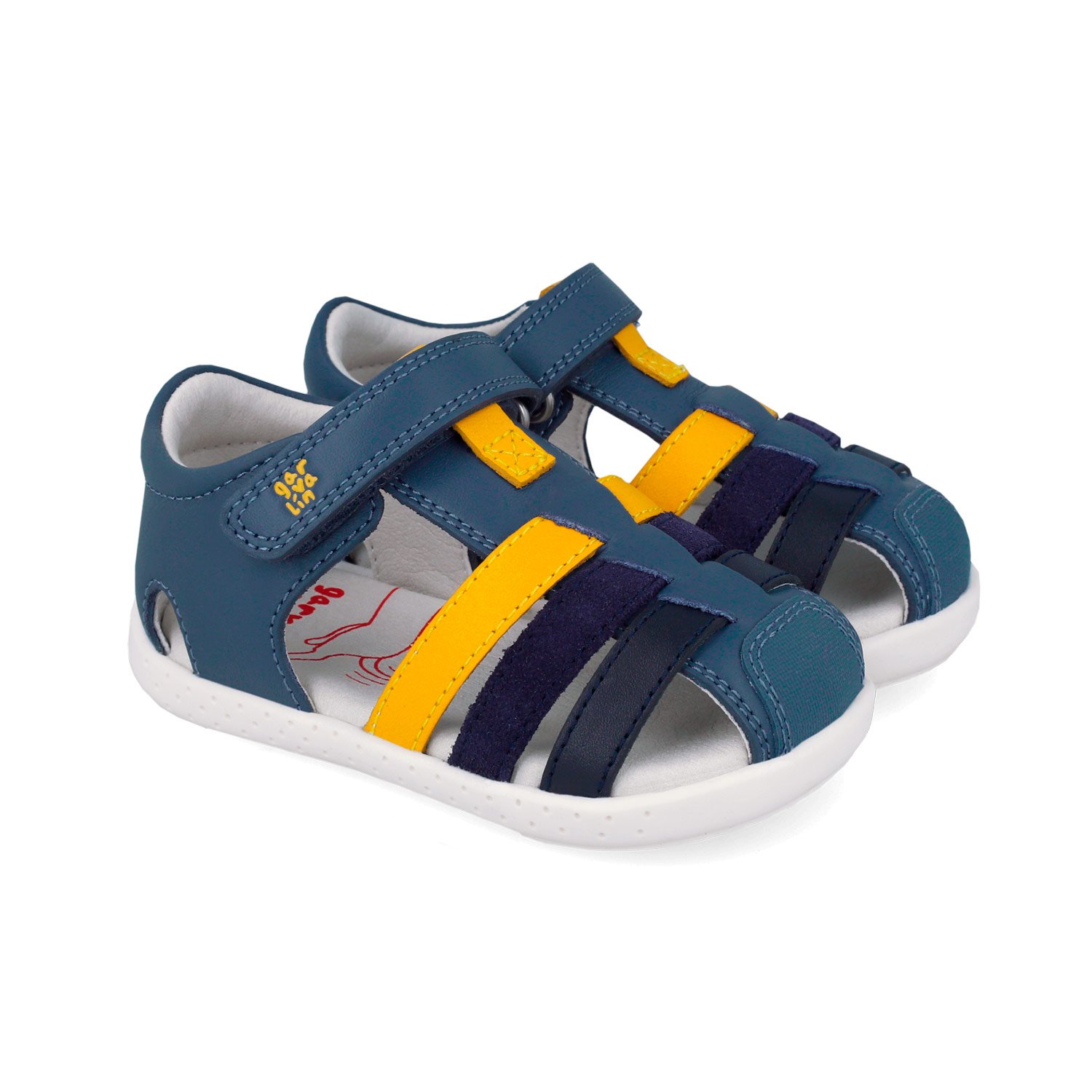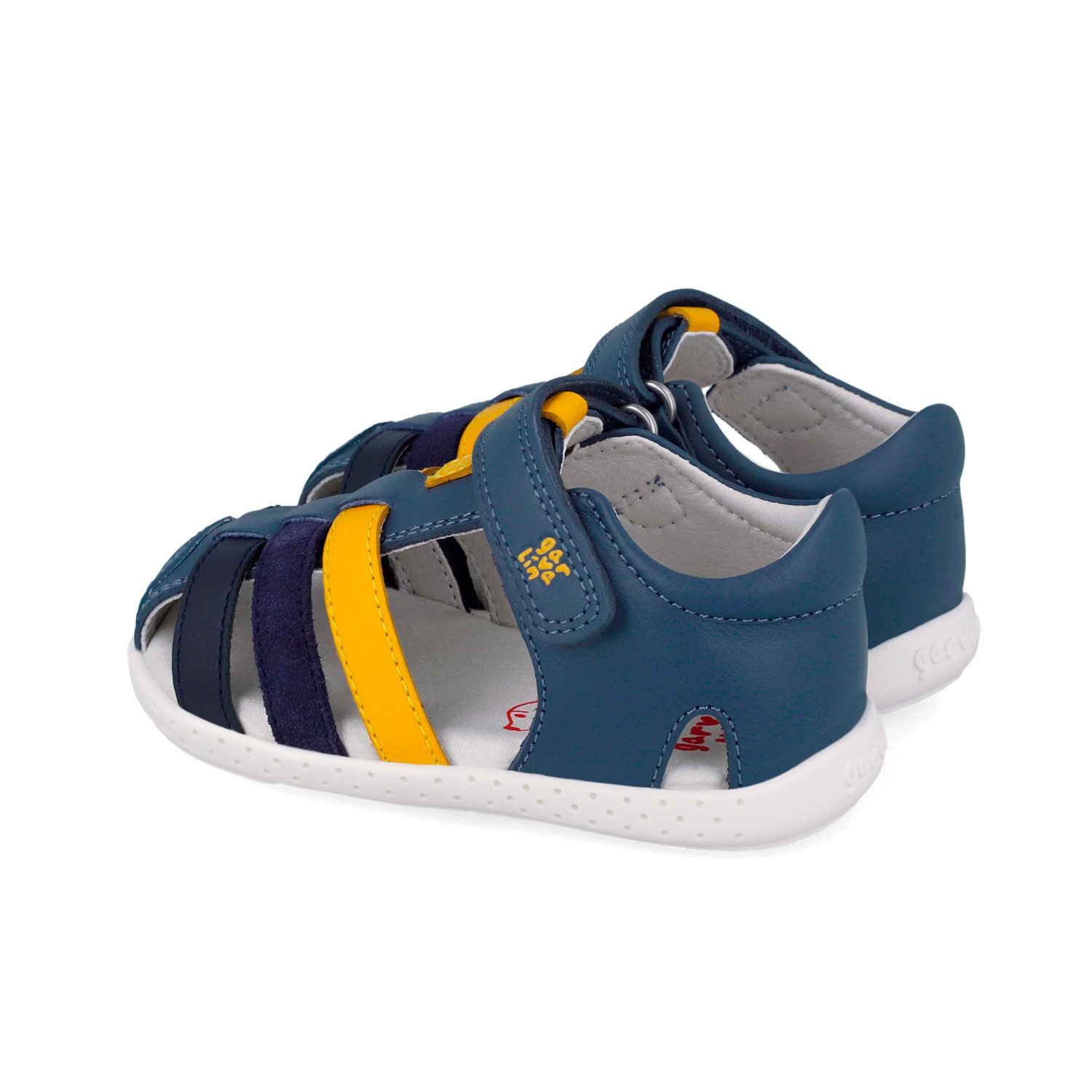 Παιδικά παπουτσοπέδιλα σε μπλε-πετρόλ χρώμα με κίτρινη & μπλε λεπτομέρεια.