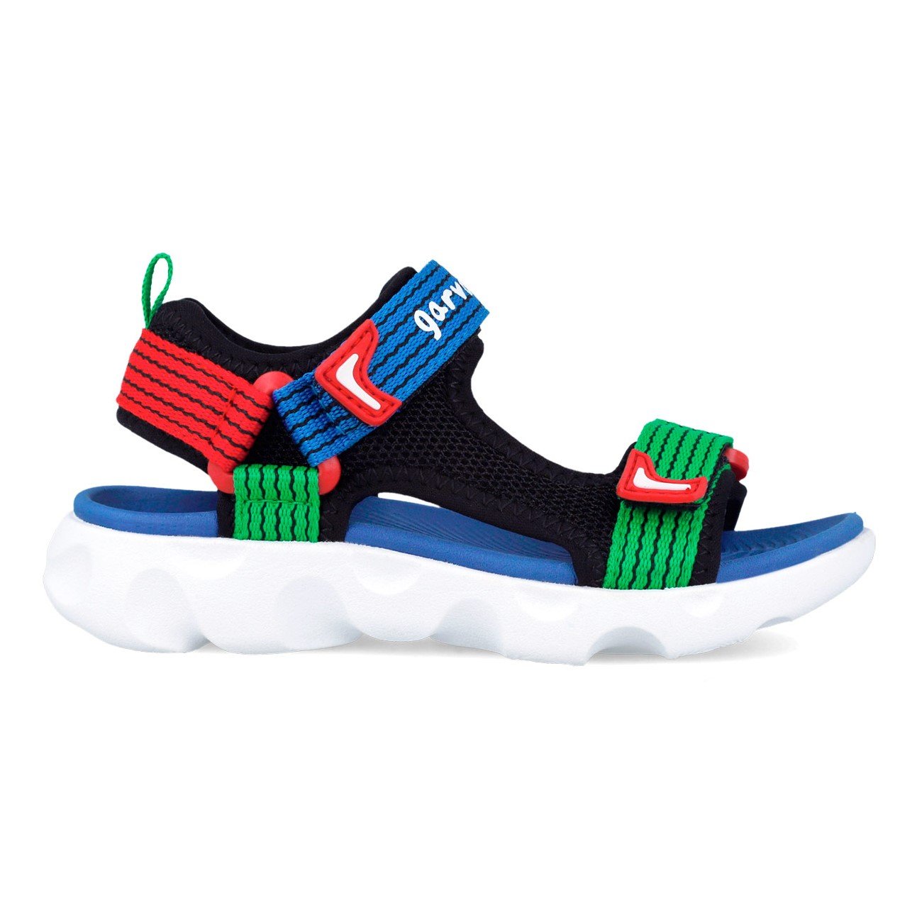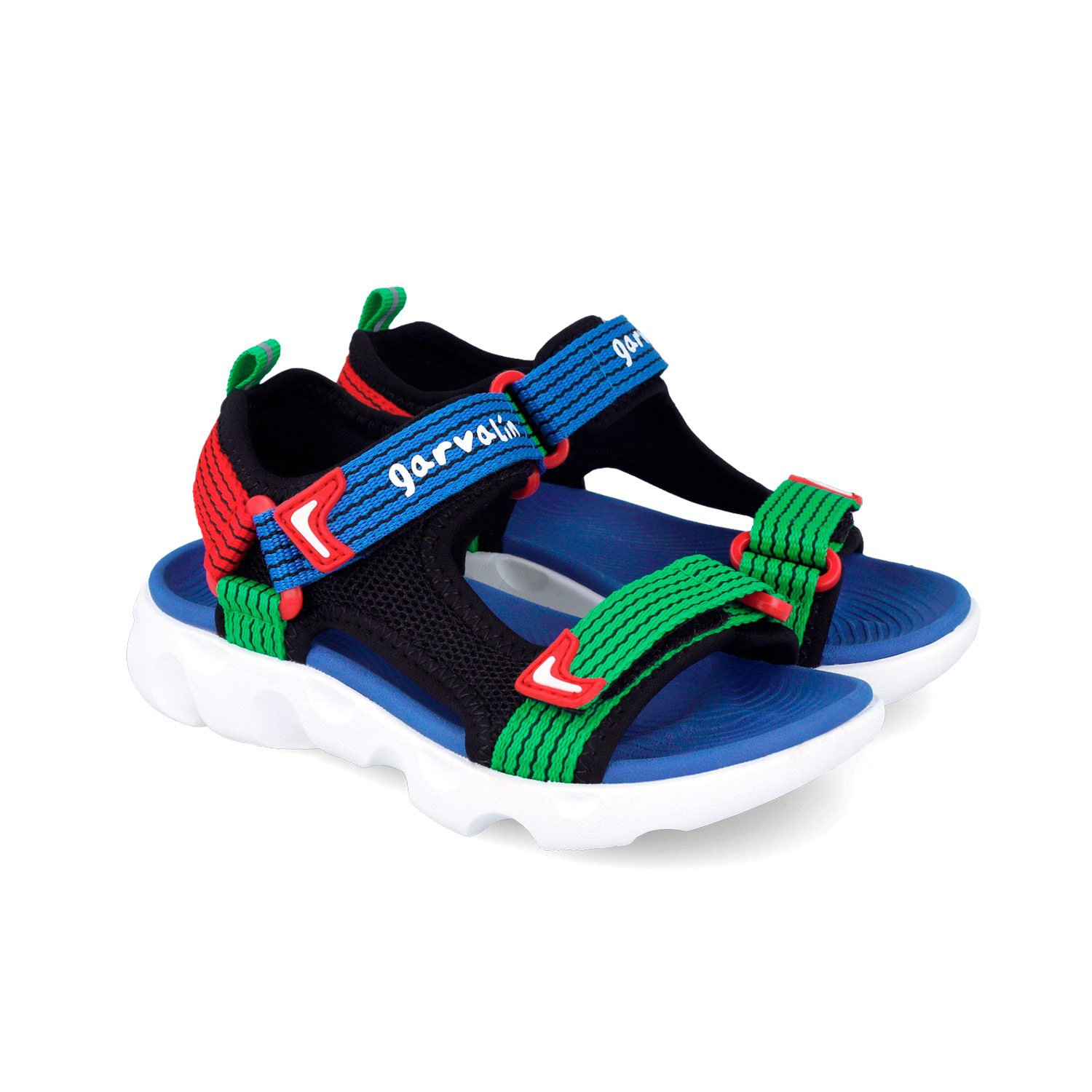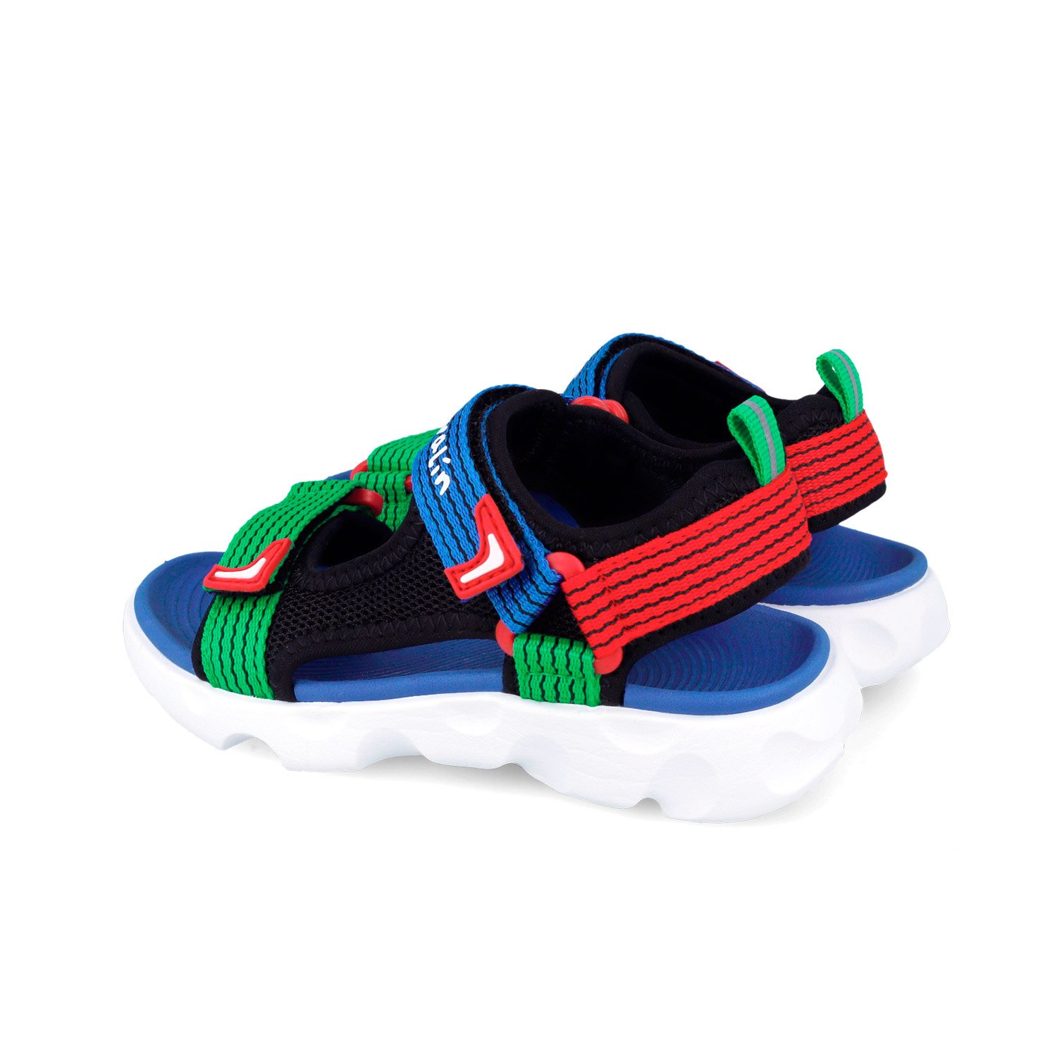 Παιδικό sport πέδιλο, σε μαύρη βάση, με λεπτομέρειες σε κόκκινο-πράσινο-μπλε.