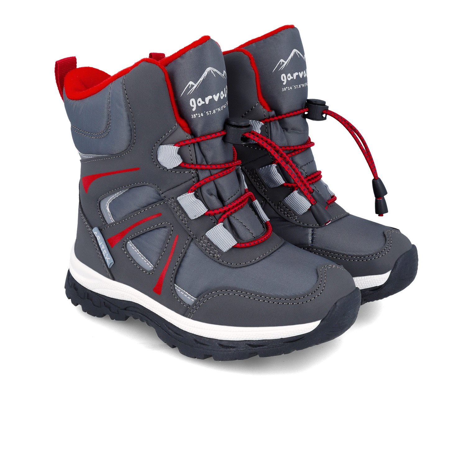 Αγορίστικες apreski μπότες σε γκρι χρώμα, με κόκκινες λεπτομέρειες.