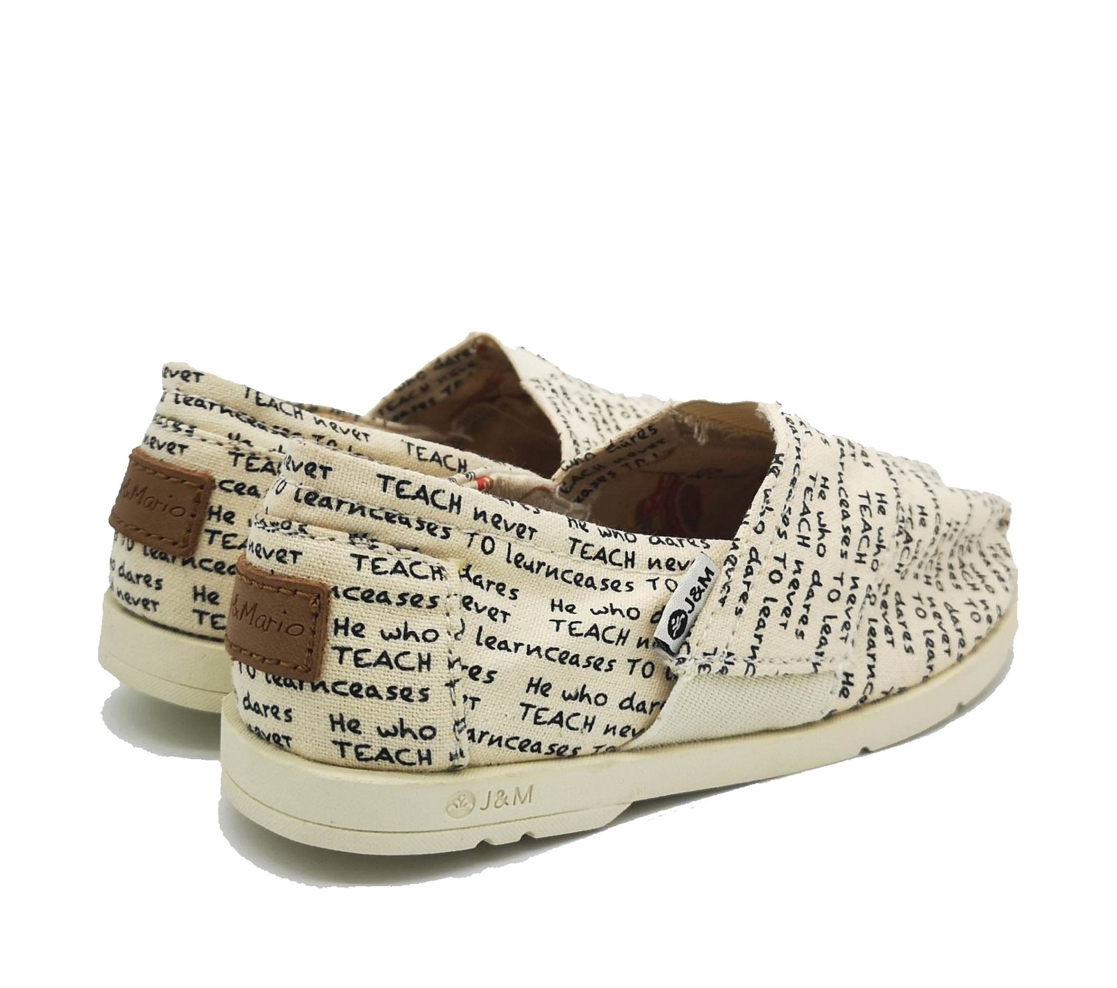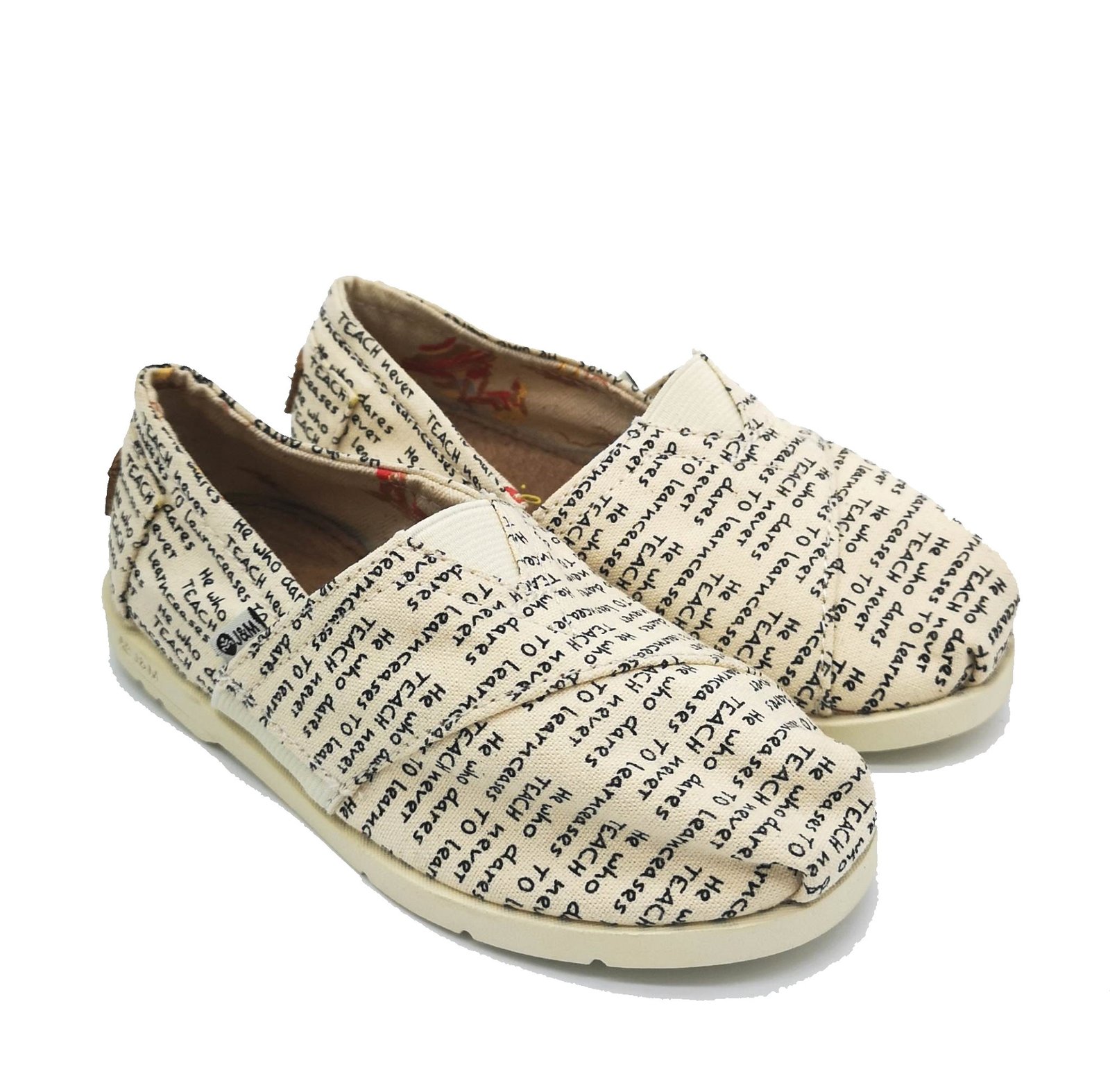 Υφασμάτινες εσπαντρίγιες, σε εκρού/μπεζ χρώμα, με σχέδιο γράμματα.