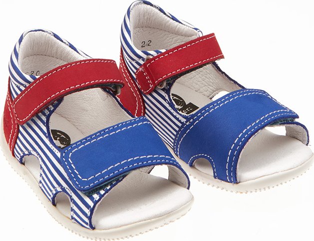 Παιδικά δερμάτινα παπουτσοπέδιλα,σε κόκκινο&μπλε ριγέ χρώμα.Ιδανικό για τα πρώτα βήματα του μωρού σας,με δερμάτινη επένδυση και δερμάτινο,ανατομικό πάτο.Το πέλμα είναι αντιμικροβιακό και αντιμυκητιακό,η σόλα εύκαμπτη και μαλακή με στήριξη στη φτέρνα και στον αστράγαλο.Κλείσιμο με δύο αυτοκόλλητα.Εταιρεία που συστήνεται από πολλούς ορθοπεδικούς και παιδιάτρους.