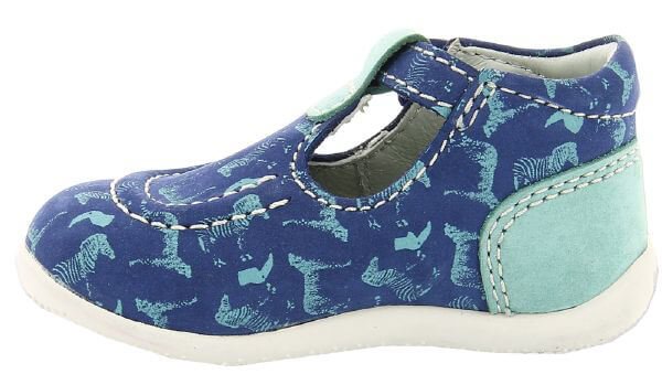 Παιδικά δερμάτινα παπουτσοπέδιλα, σε στυλ μπαρέτας σε μπλε ηλεκτρίκ χρώμα με τυρκουάζ λεπτομέρειες.