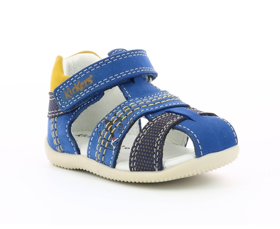 Παιδικά δερμάτινα παπουτσοπέδιλα,σε μπλε χρώμα με κίτρινες λεπτομέρειες.