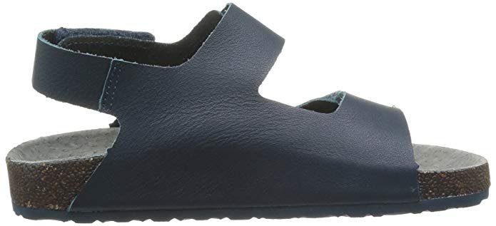 Παιδικά δερμάτινα πέδιλα με ανατομικό πέλμα,τύπου σκαφάκι,σε μπλε σκούρο χρώμα.Διαθέτουν ανατομική βάση σόλας, κατασκευασμένη από δέρμα, παρέχοντας τέλεια εφαρμογή, καθώς είναι κατάλληλα σχηματισμένη για το πέλμα.Η κυρίως σόλα είναι φτιαγμένη από υλικό EVA (φελλός και λάτεξ), διαμορφωμένη ώστε να απορροφά τους κραδασμούς.Το κάτω μέρος της σόλας διαθέτει αντιολισθητικό σχεδιασμό.Κατασκευασμένα από δέρμα εσωτερικά και εξωτερικά.Κλείσιμο με δύο αυτοκόλλητα.