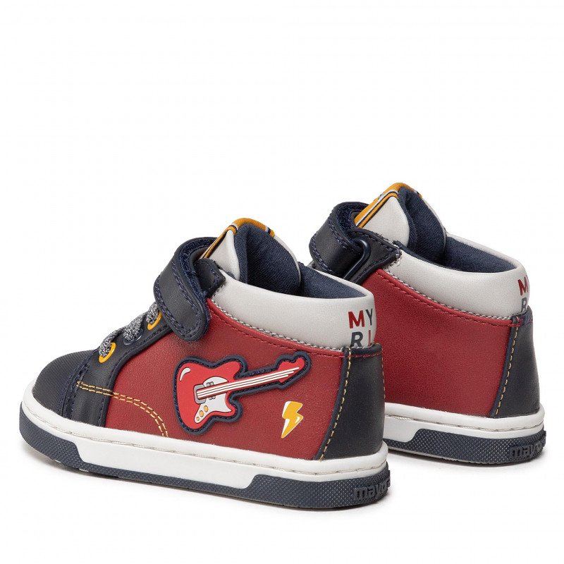 Παιδικά μποτάκια σε στυλ sneakers σε κόκκινο & μπλε χρώμα, με σχέδιο κιθάρα.