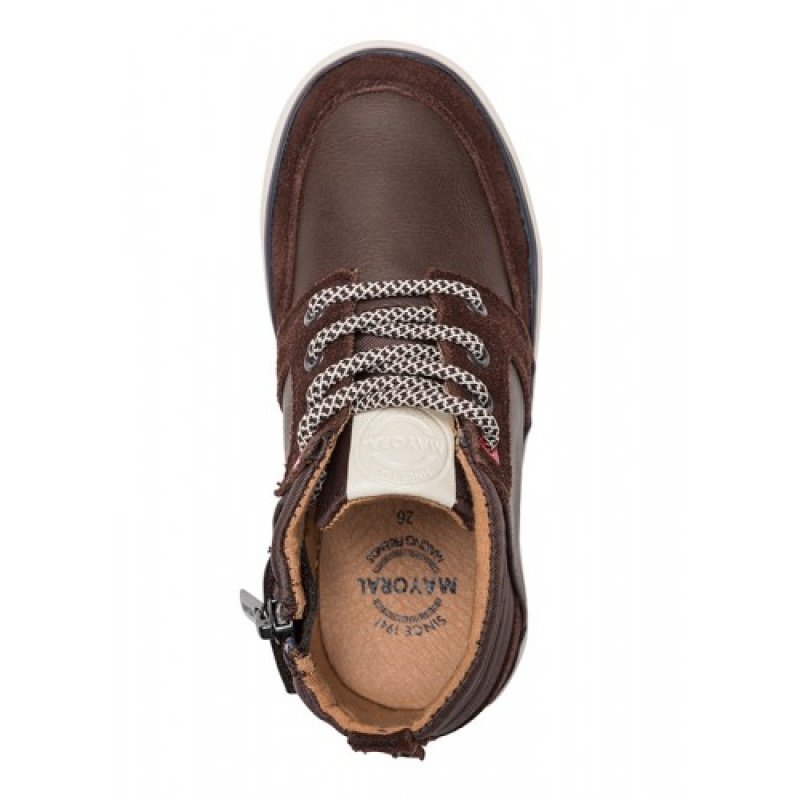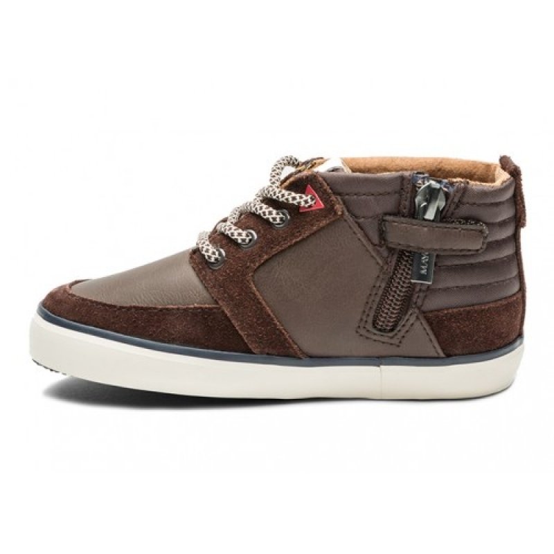 Παιδικά μποτάκια σε στυλ sneakers σε καφέ χρώμα.Εξωτερικά συνδυασμός δέρμα suede και τεχνόδερμα και εσωτερικά επένδυση βαμβακερό ύφασμα.Διαθέτουν δερμάτινο,ανατομικό πέλμα.Η σόλα είναι κατασκευασμένη από λάστιχο,ώστε να είναι εύκαμπτη,μαλακή και αντιολισθητική.Κλείσιμο με φερμουάρ εσωτερικά και κορδόνια για σταθερά βήματα.