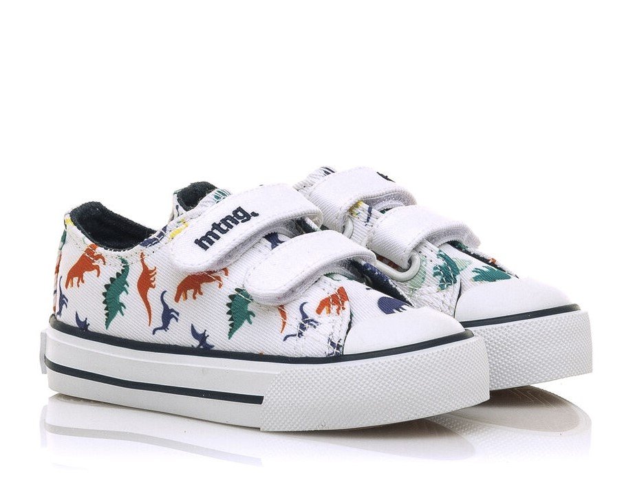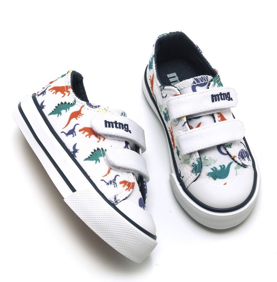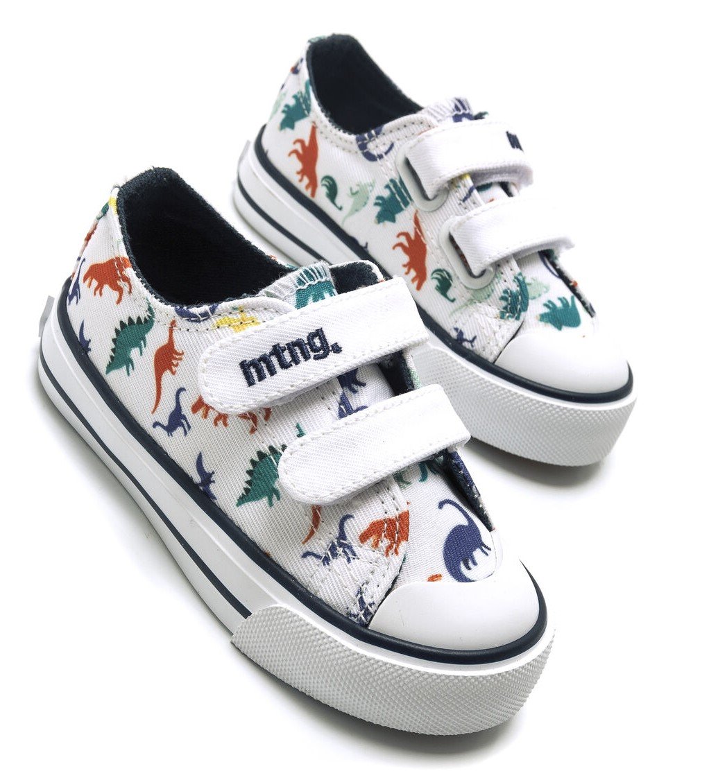 Παιδικά πάνινα sneakers, σε λευκό χρώμα, με πολύχρωμους δεινόσαυρους.