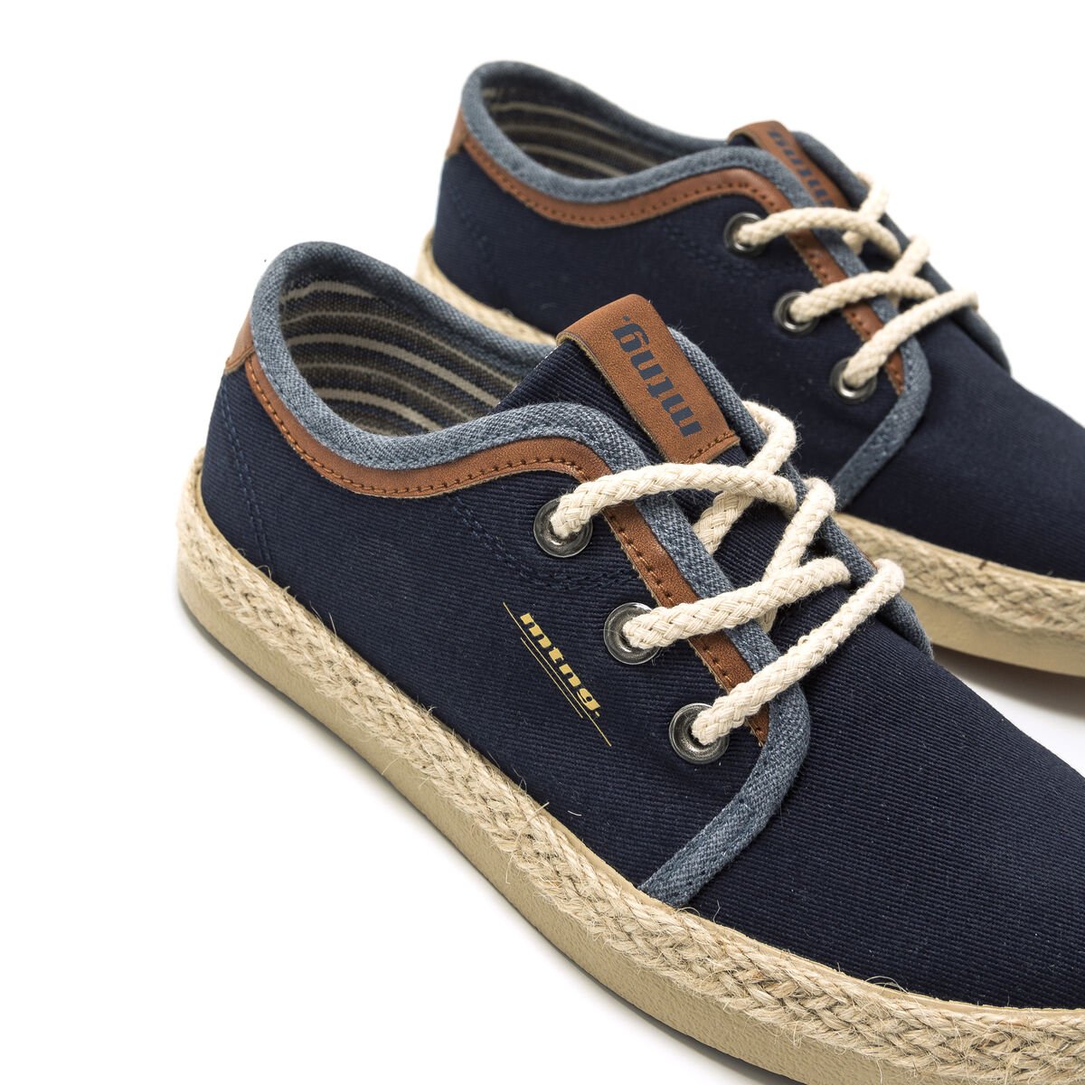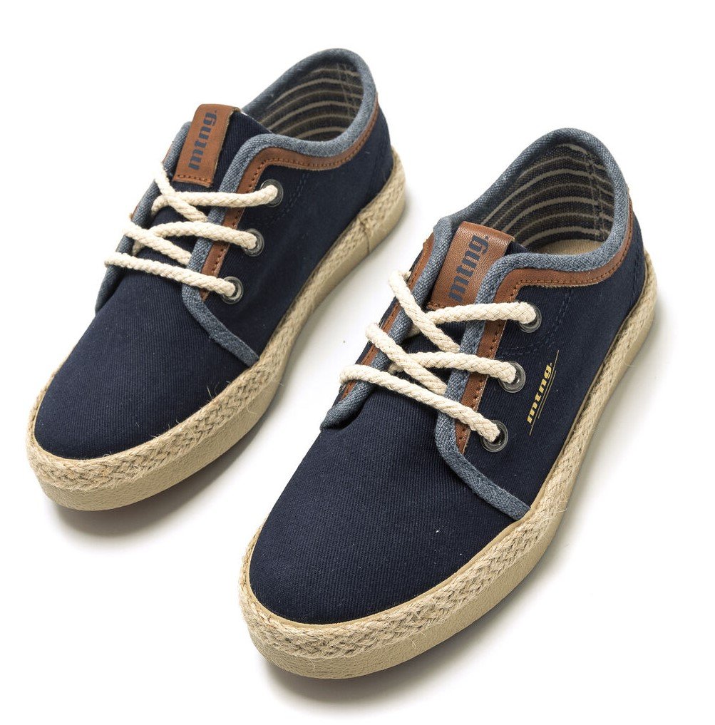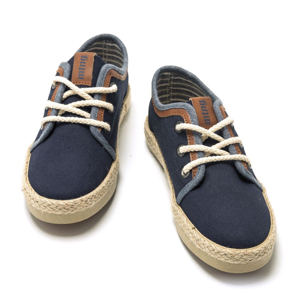 Αγορίστικο πάνινο casual χαμηλό παπούτσι, σε σκούρο μπλε χρώμα, με ραφ & ταμπά λεπτομέρεια και καραβόσκοινο στη σόλα.