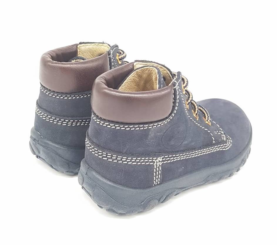 Παιδικά δερμάτινα μποτάκια σε μπλε χρώμα με καφέ λεπτομέρειες.