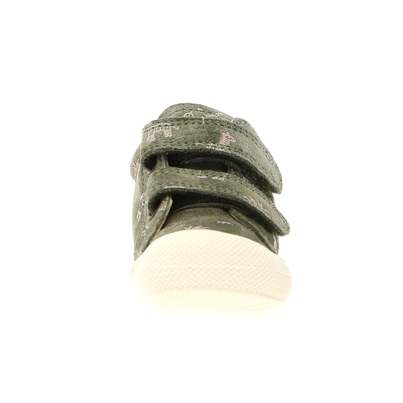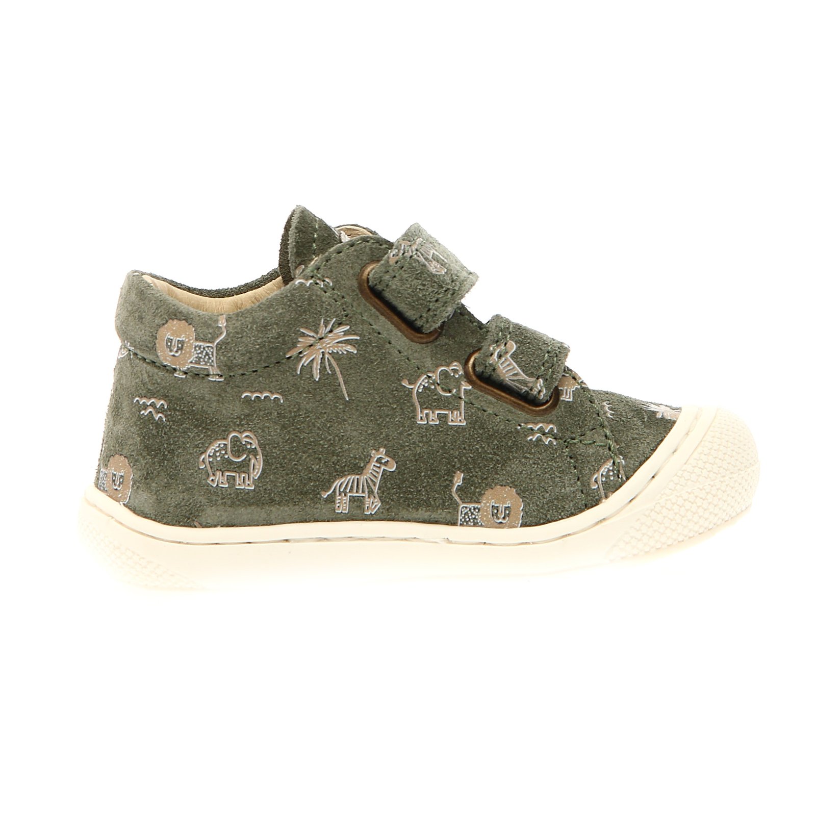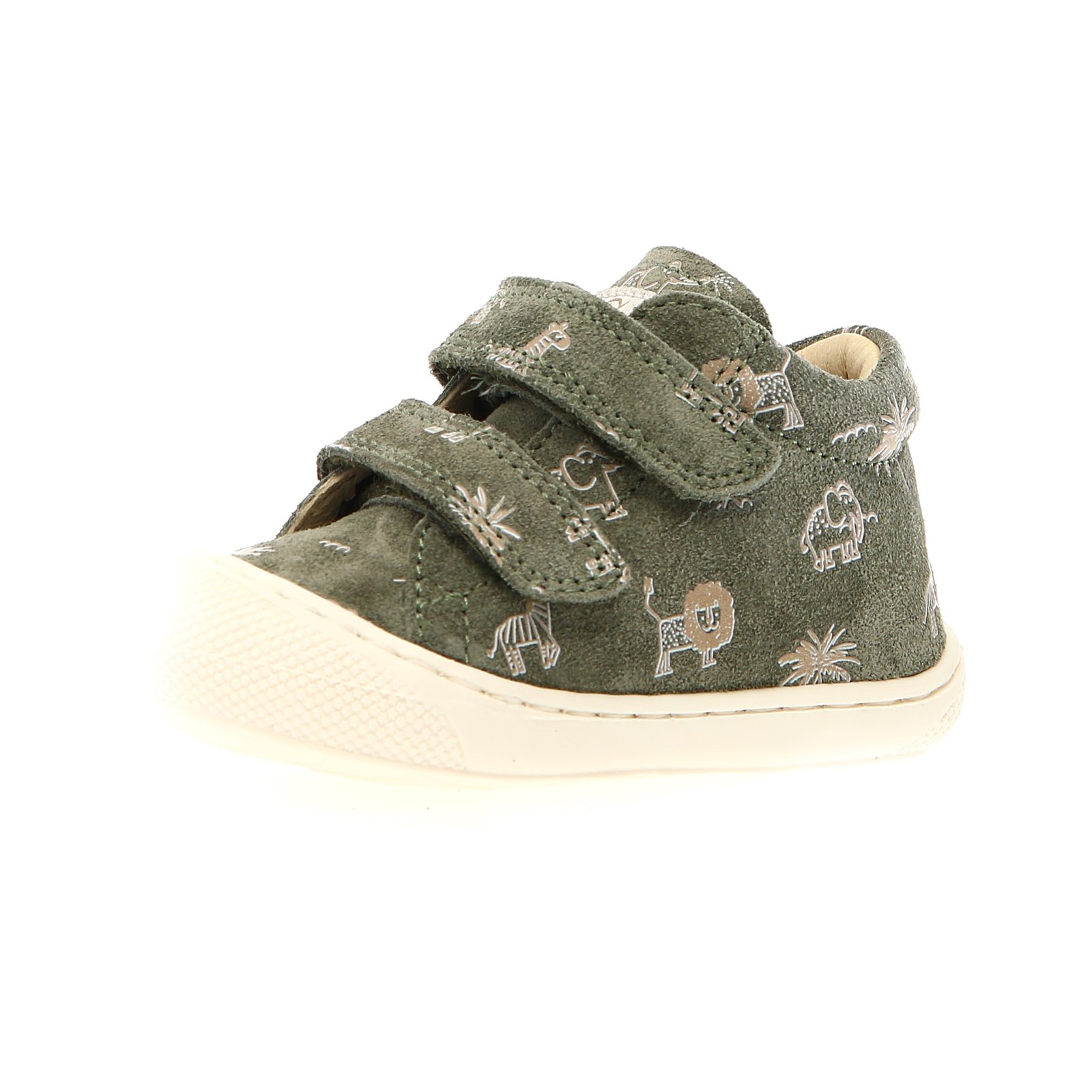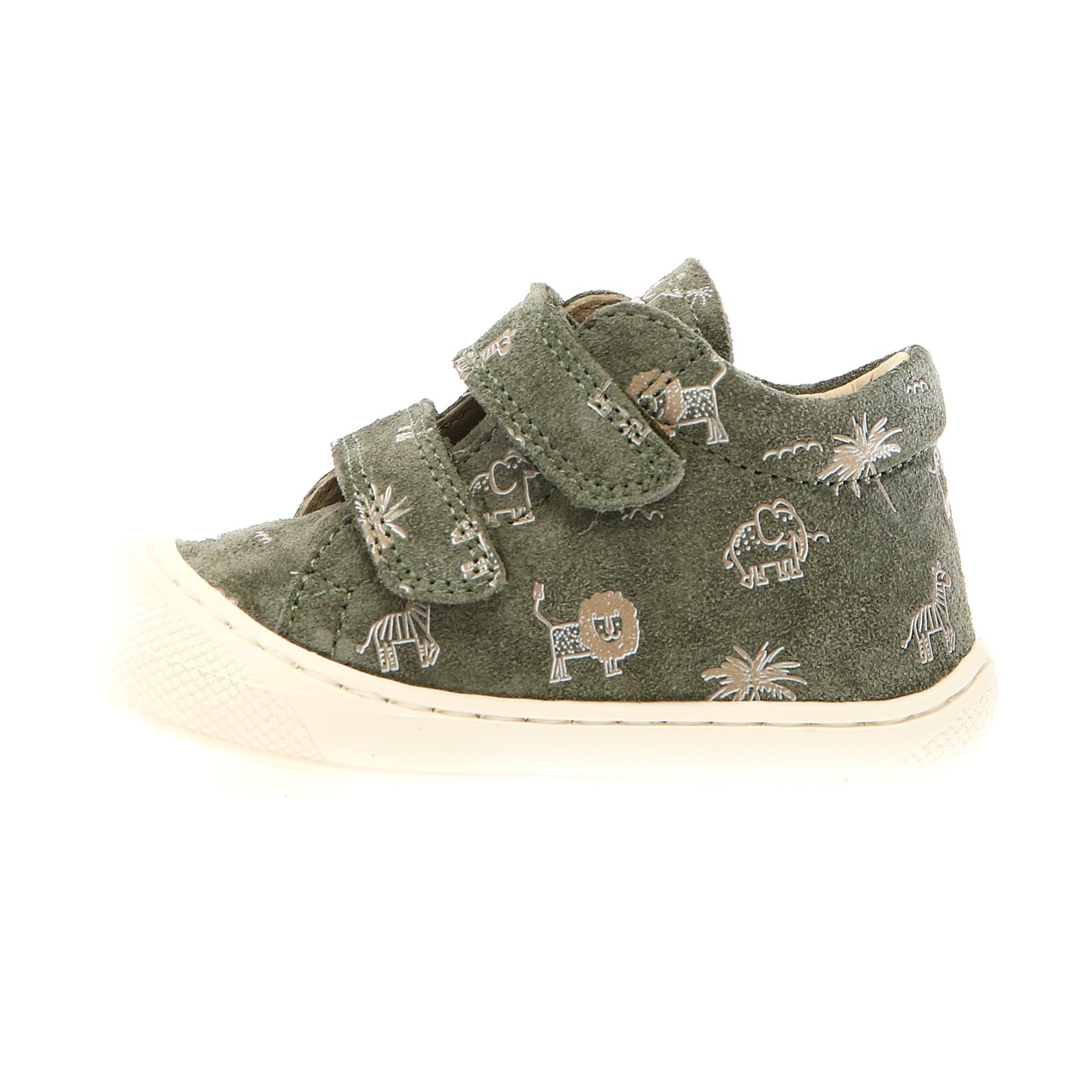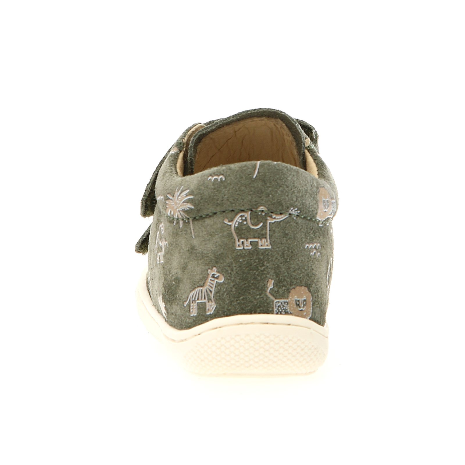 Παιδικά δερμάτινα ανατομικά μποτάκια σε πράσινο - χακί/λαδί χρώμα, με σταμπωτό σχέδιο ζωάκια.