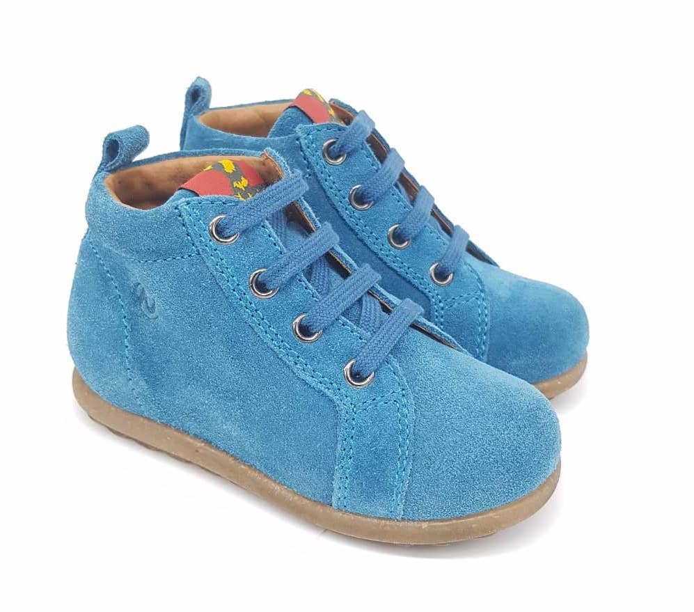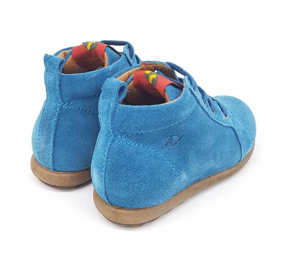 Παιδικά δερμάτινα suede μποτάκια σε οινοπνευματί μπλε χρώμα.