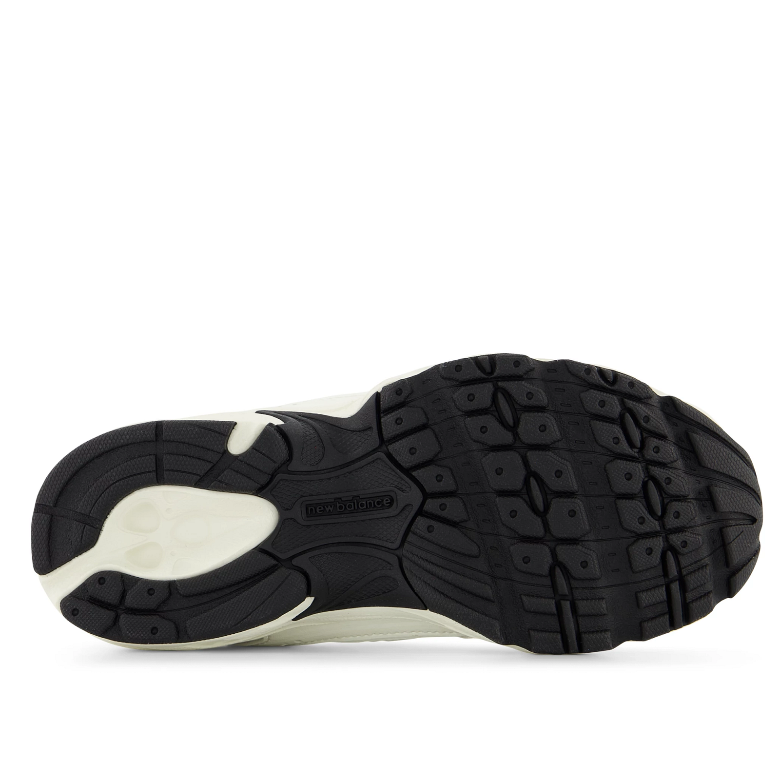 Unisex παιδικό αθλητικό παπούτσι σε χρώμα εκρού/σπασμένο λευκό, με πράσινο το σήμα της New Balance.
