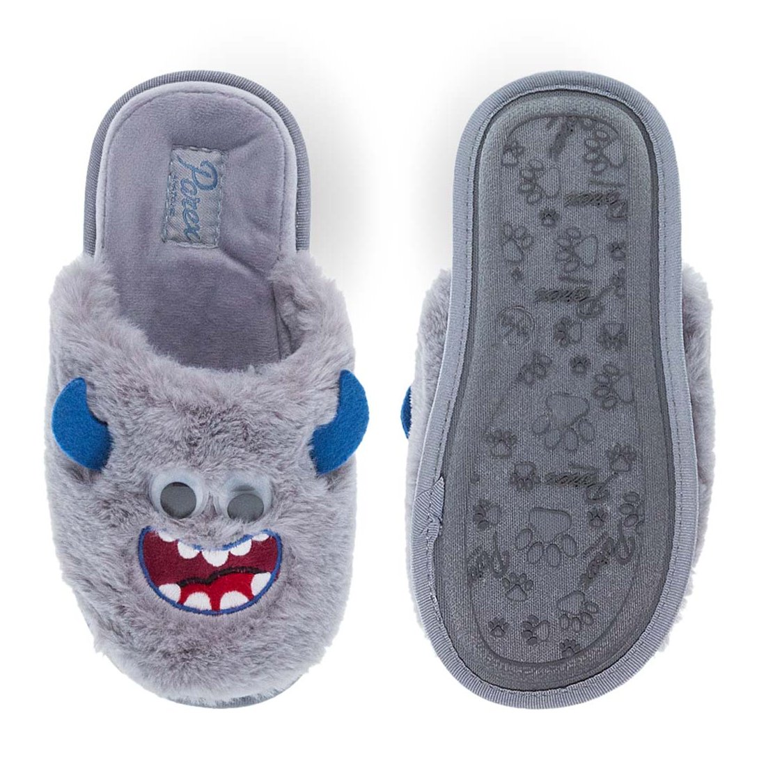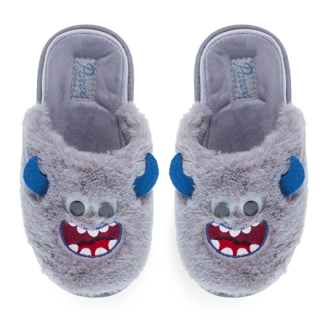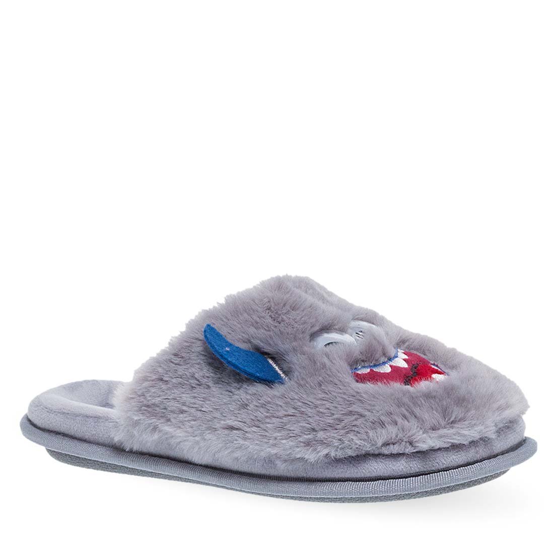 Αγορίστικες παντόφλες, σε γκρι χρώμα, με σχέδιο τερατάκι.