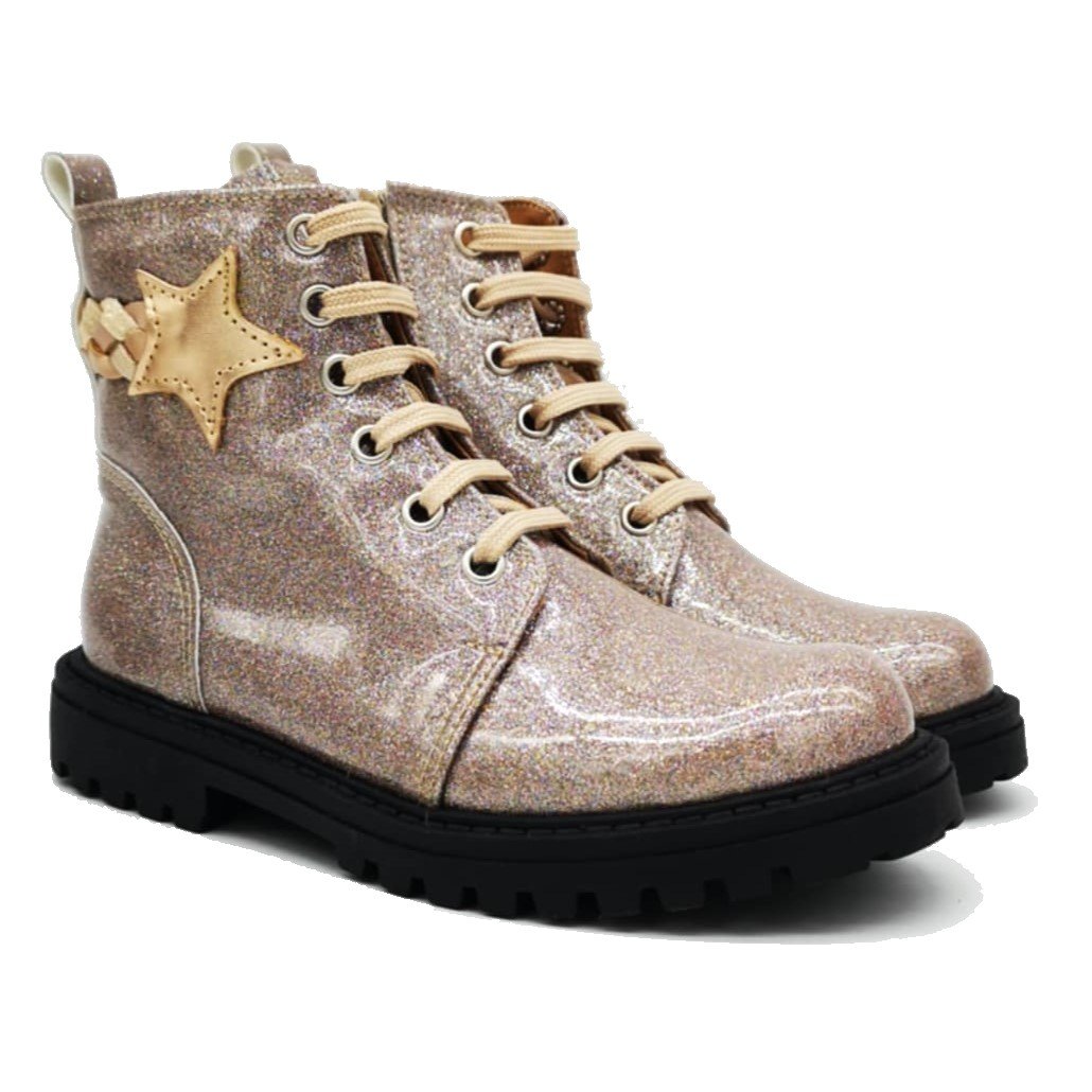 Παιδικά δερμάτινα μποτάκια, στυλ αρβυλάκια, σε υπέροχο περλέ χρυσό της άμμου χρώμα, με σχέδιο αστέρι.