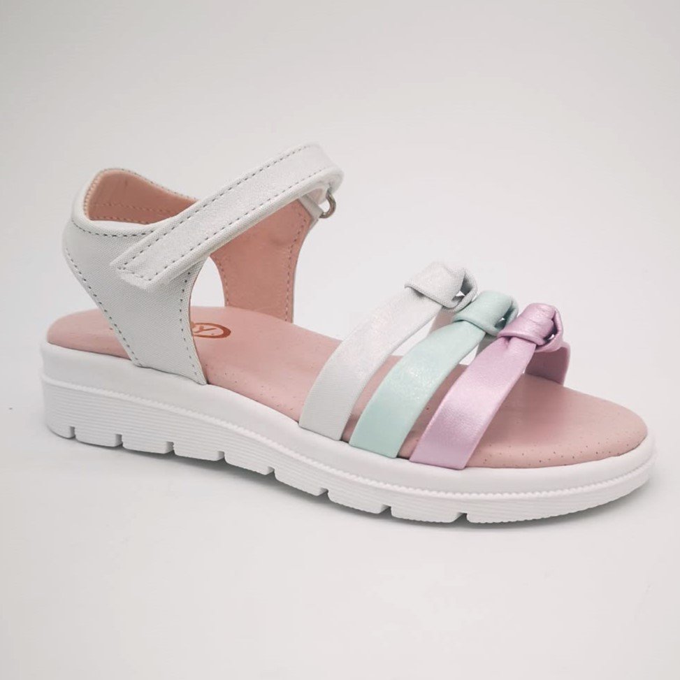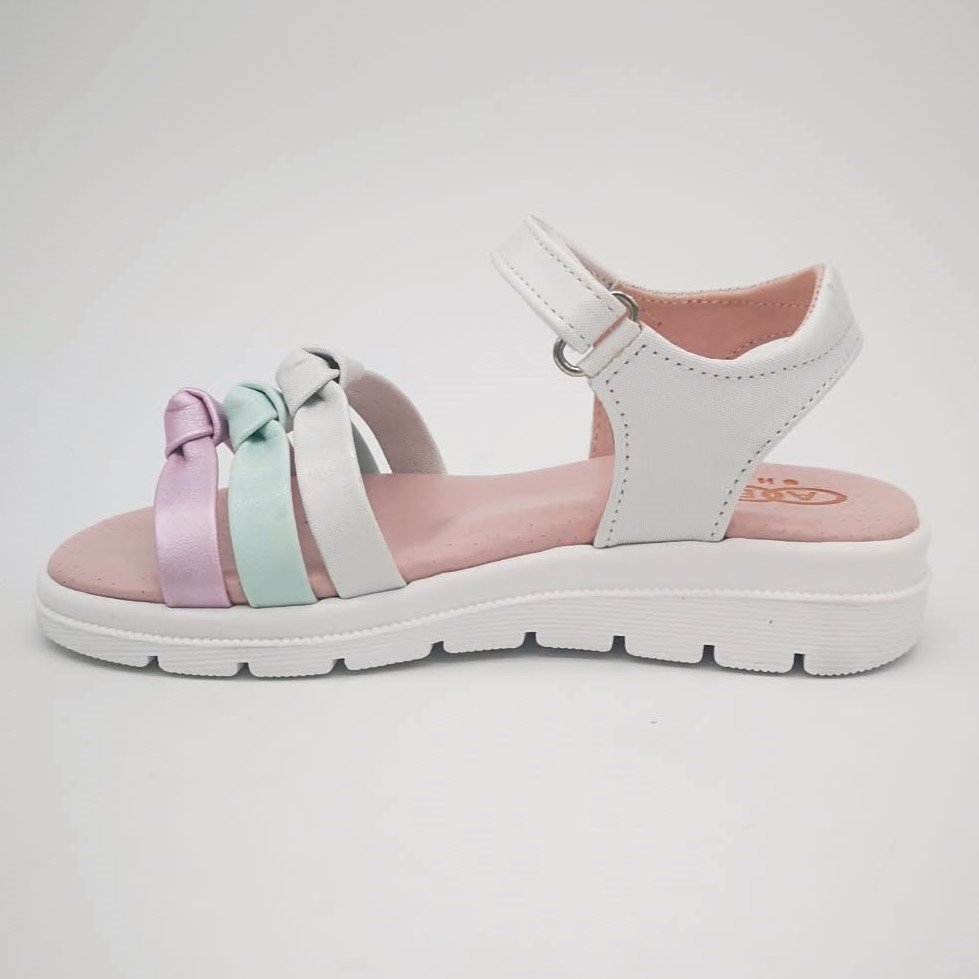 Παιδικά δερμάτινα πέδιλα σε λευκό/πάγου περλέ χρώμα, με παστέλ λουράκια.