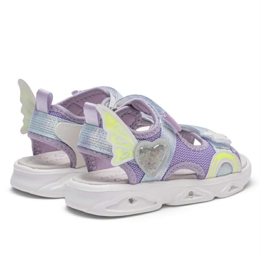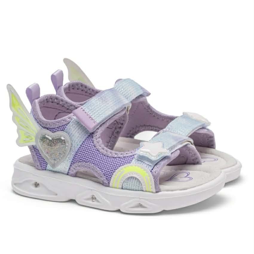 Κοριτσίστικο sport πέδιλο σε υπέροχο λιλά χρώμα, με ιριδίζουσες λεπτομέρειες & σχέδιο καρδούλα-φτερά.