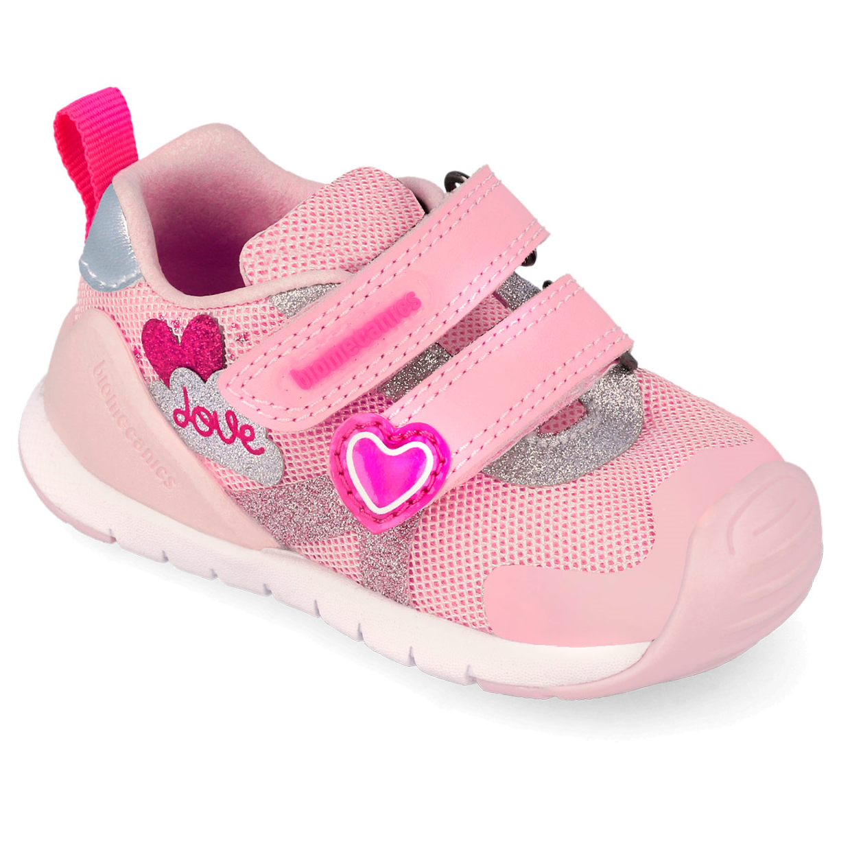 Σε sport στυλ, χρώμα ροζ, με σχέδιο καρδούλα.