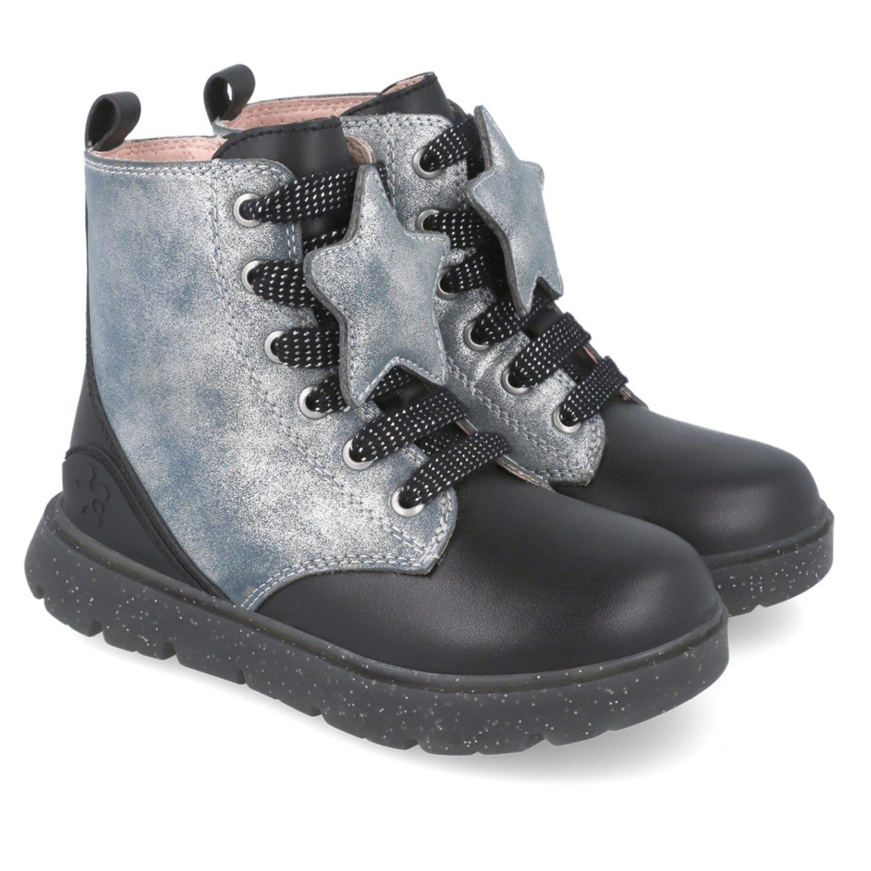 Σε μαύρο ματ και ασημί μεταλλιζέ χρώμα, με διακοσμητικό ασημί αστέρι στα κορδόνια.