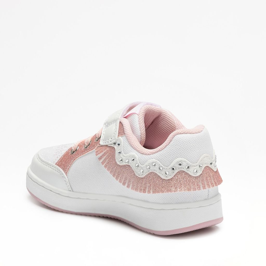 Κοριτσίστικο sneaker σε λευκό χρώμα, με κρόσσια, ροζ glitter, κόσμημα-καρδούλα & ΦΩΤΑΚΙΑ στο πλάι!
