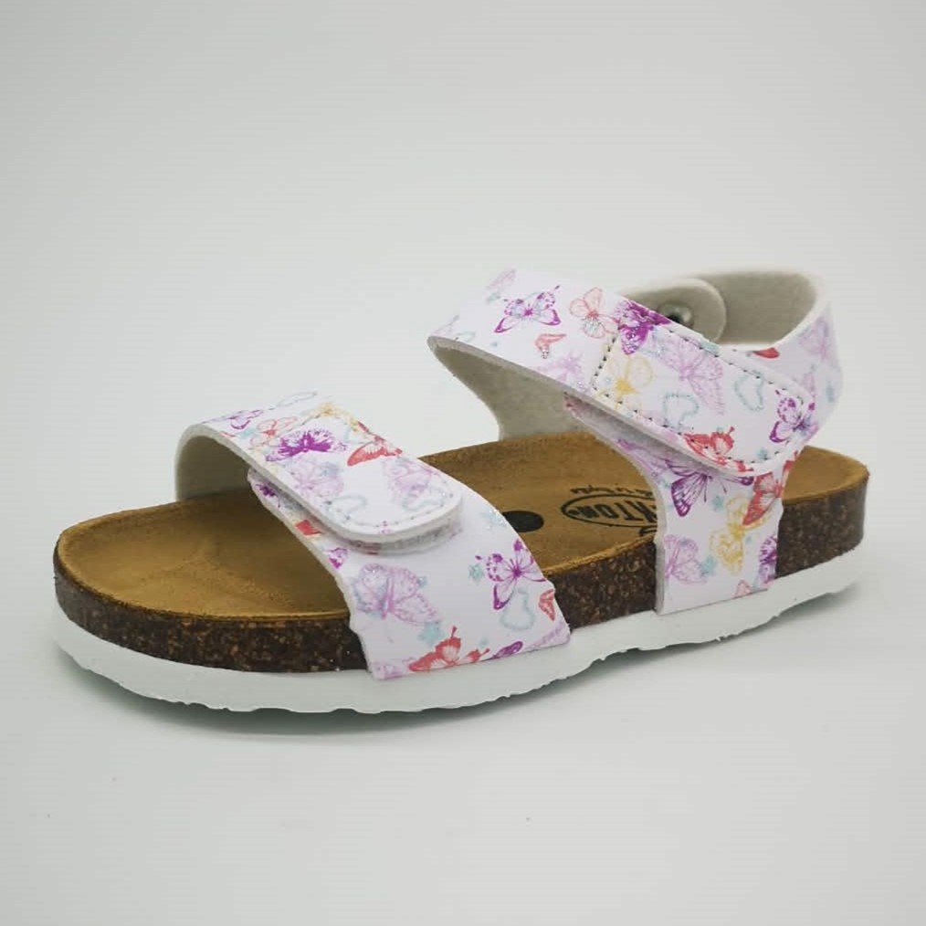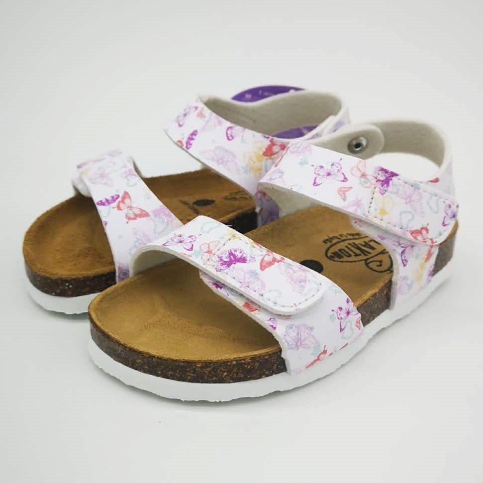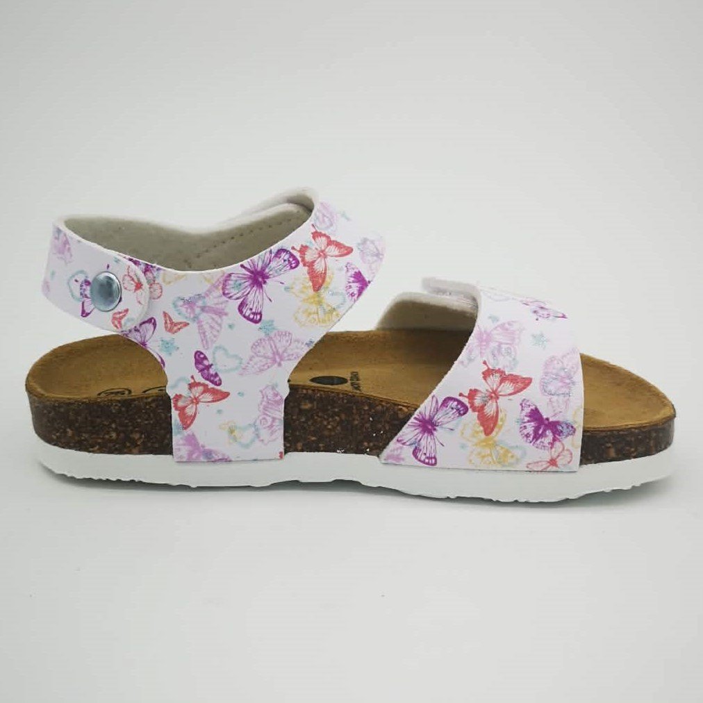 Παιδικά πέδιλα με ανατομικό πέλμα ,τύπου σκαφάκι ,σε λευκή βάση, με σταμπωτό σχέδιο πολύχρωμες πεταλούδες.