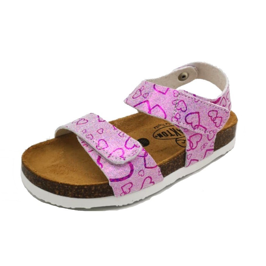Παιδικά πέδιλα με ανατομικό πέλμα ,τύπου σκαφάκι ,σε φούξια μεταλλιζέ χρώμα, με σταμπωτό σχέδιο καρδούλες.