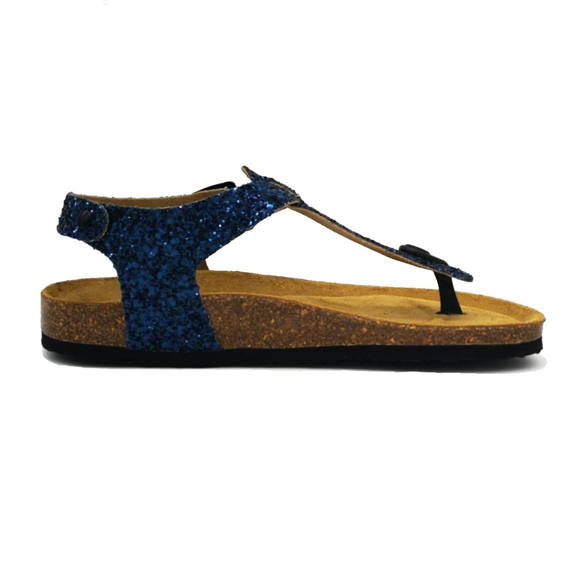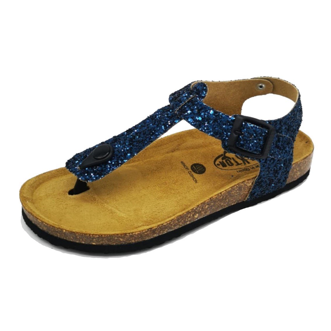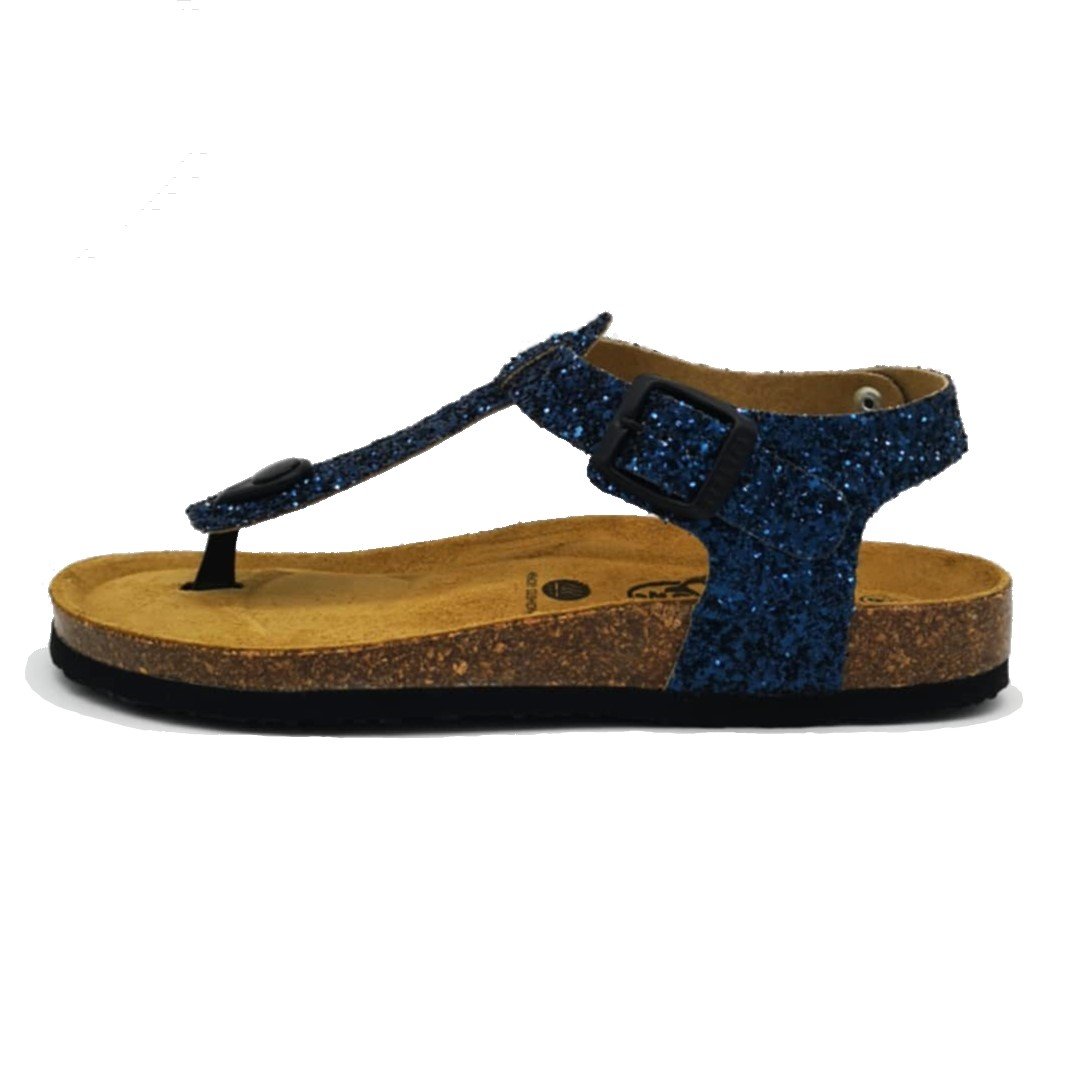 Παιδικά πέδιλα με ανατομικό πέλμα , τύπου σκαφάκι, σε μπλε glitter χρώμα.