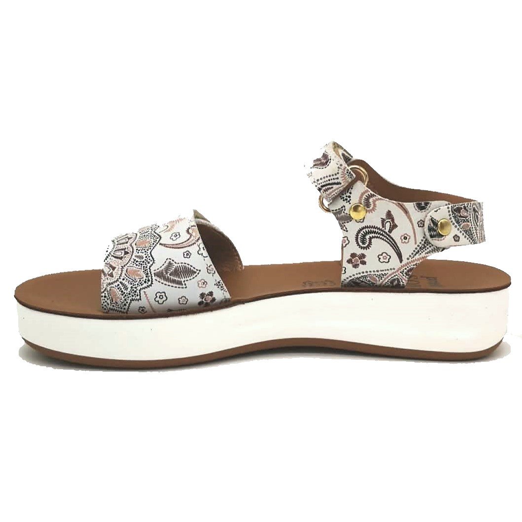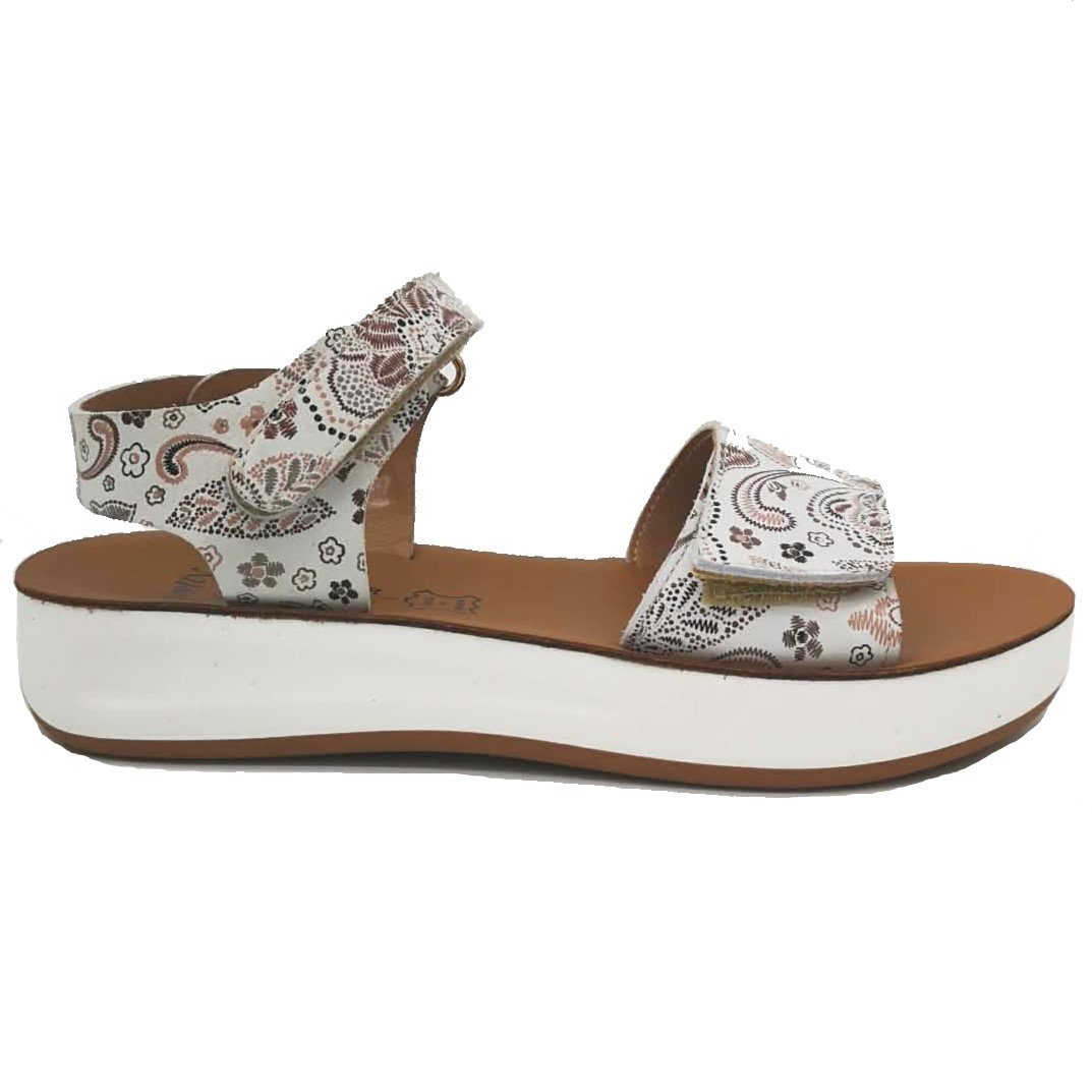 Παιδικά δερμάτινα πέδιλα σε λευκό χρώμα, με έθνικ σχέδιο.