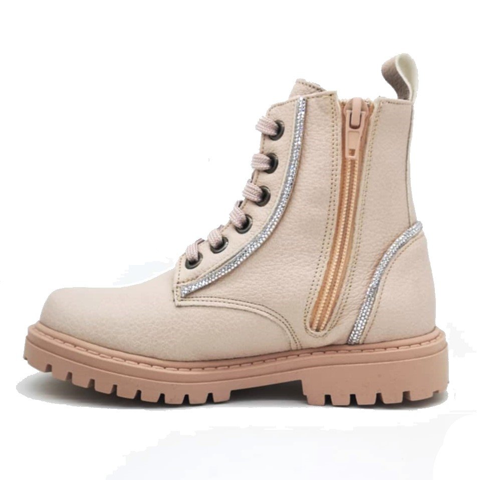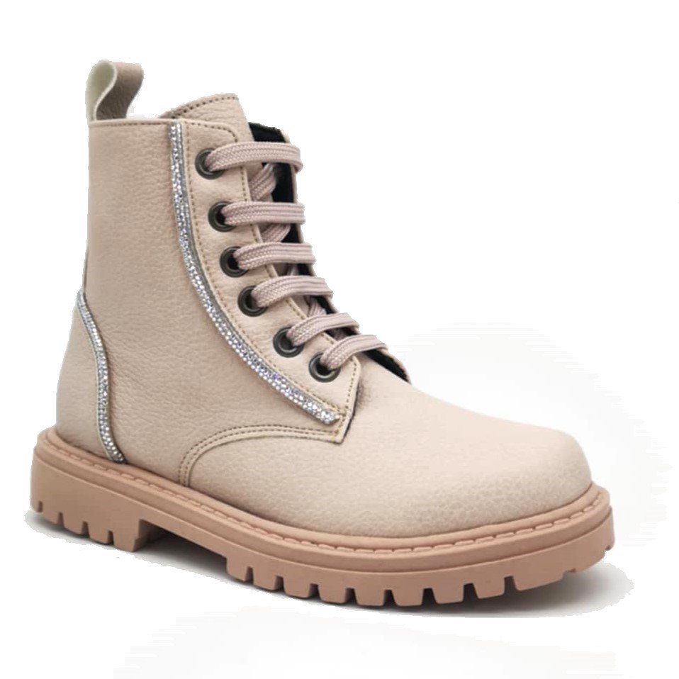 Παιδικά δερμάτινα μποτάκια, στυλ αρβυλάκια, σε απαλό ροζ ματ χρώμα, με διακριτική λεπτομέρεια με στρας.