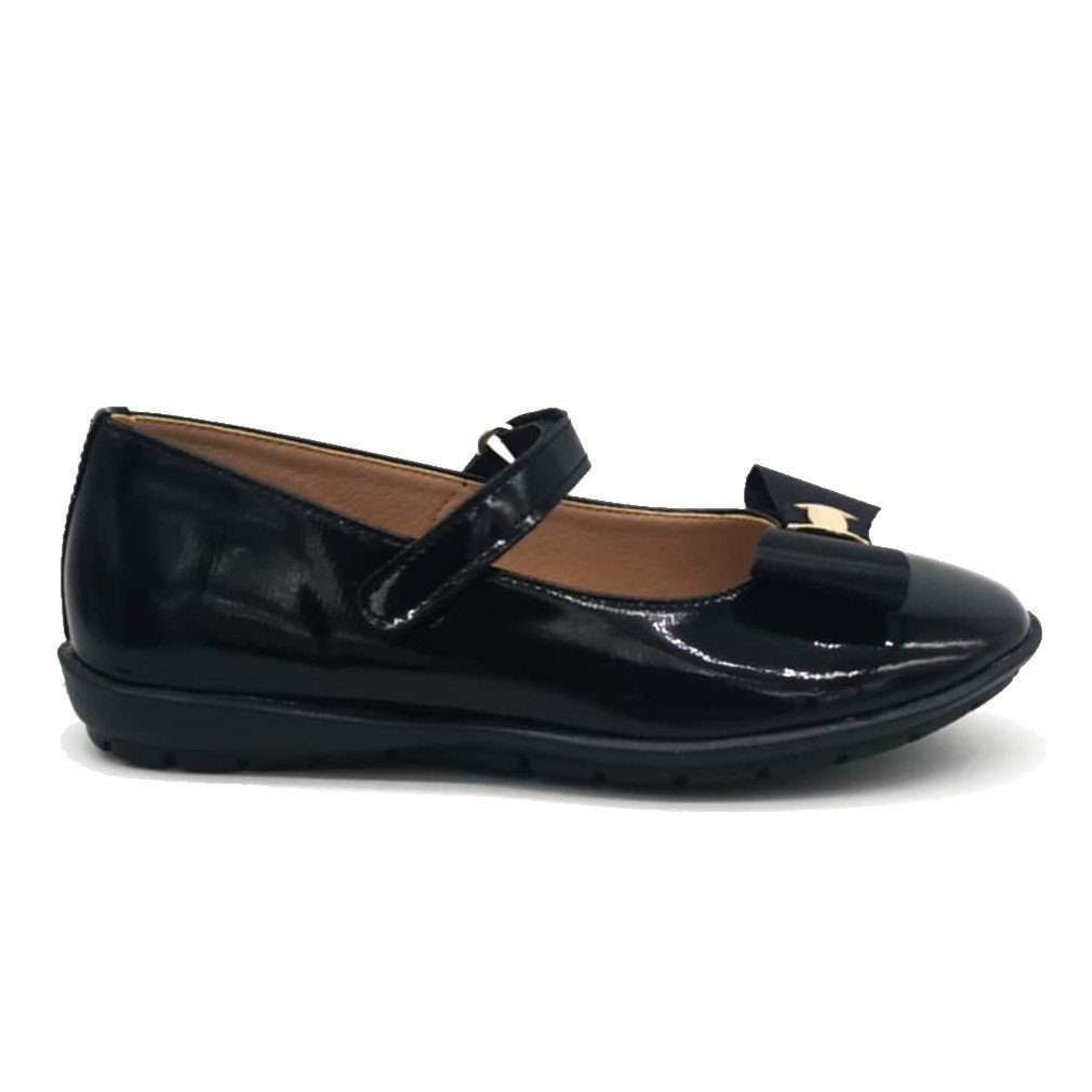 Παιδικές δερμάτινες μπαρέτες, σε μαύρο λουστρίνι χρώμα με φιογκάκι.