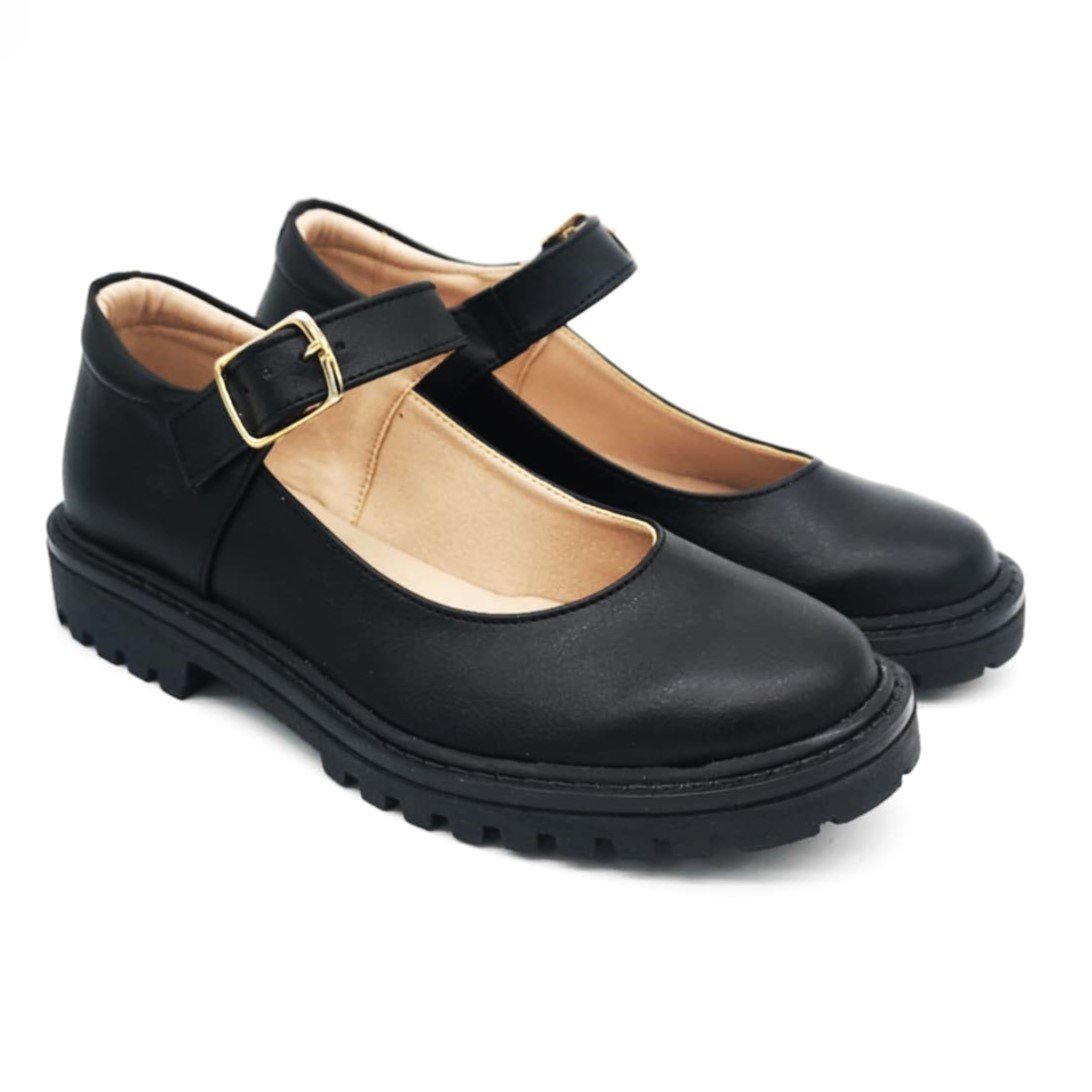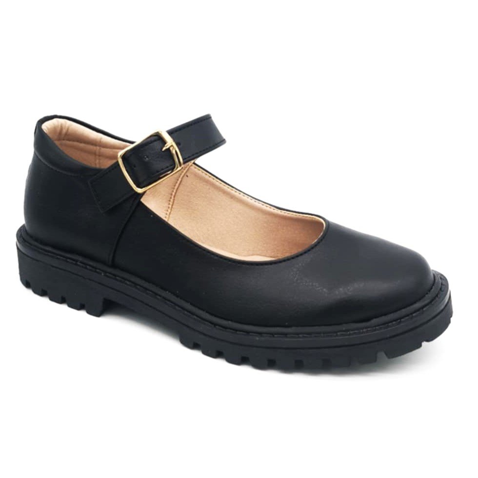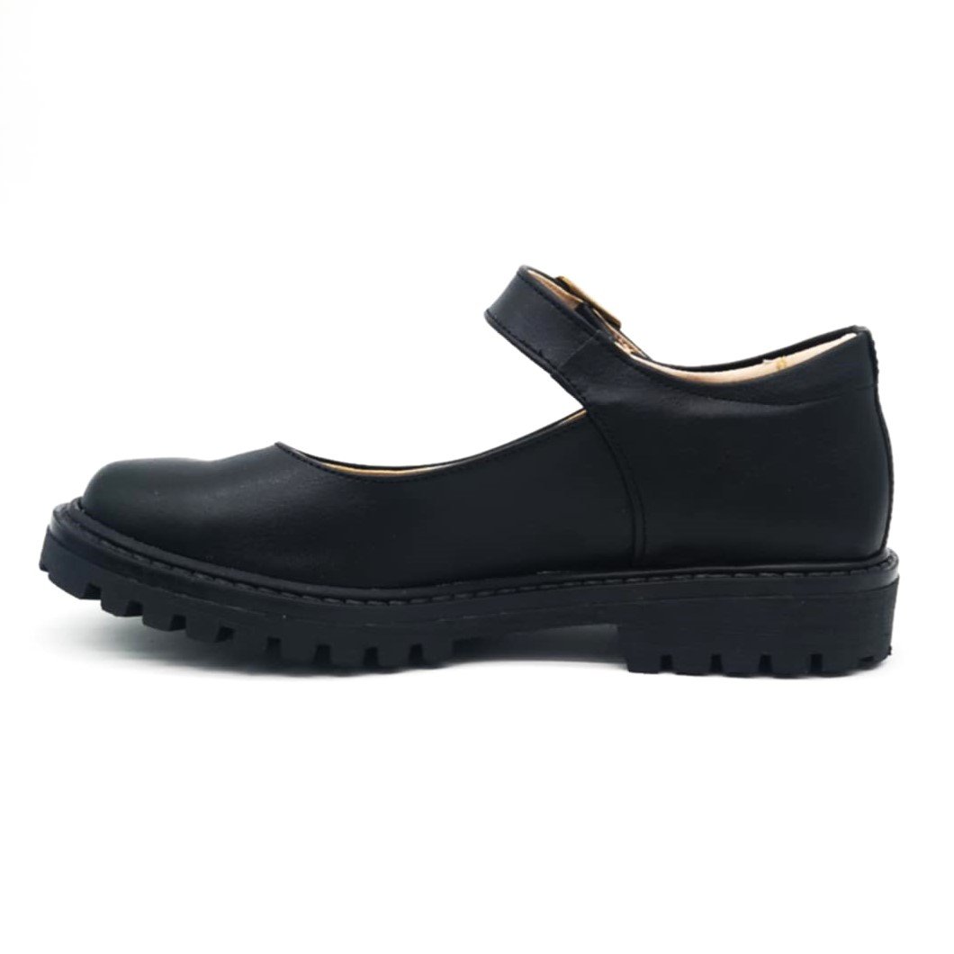 Παιδικές δερμάτινες δίσολες μπαρέτες, στυλ Mary Jane σε μαύρο ματ χρώμα.