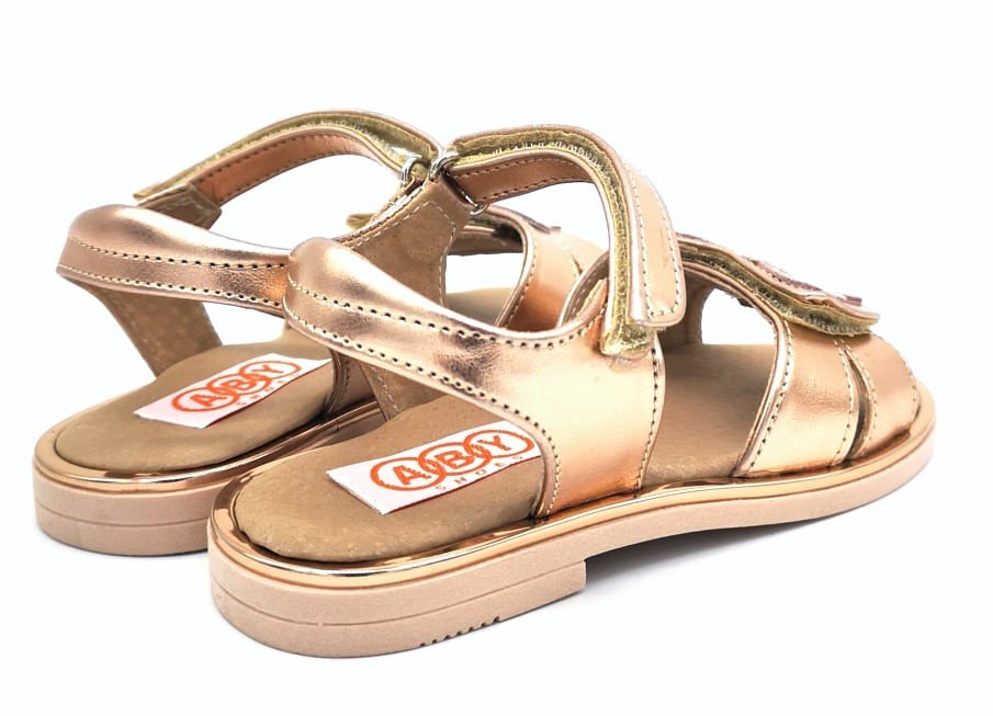 Παιδικά δερμάτινα πέδιλα σε χάλκινο/μπρονζέ χρώμα.