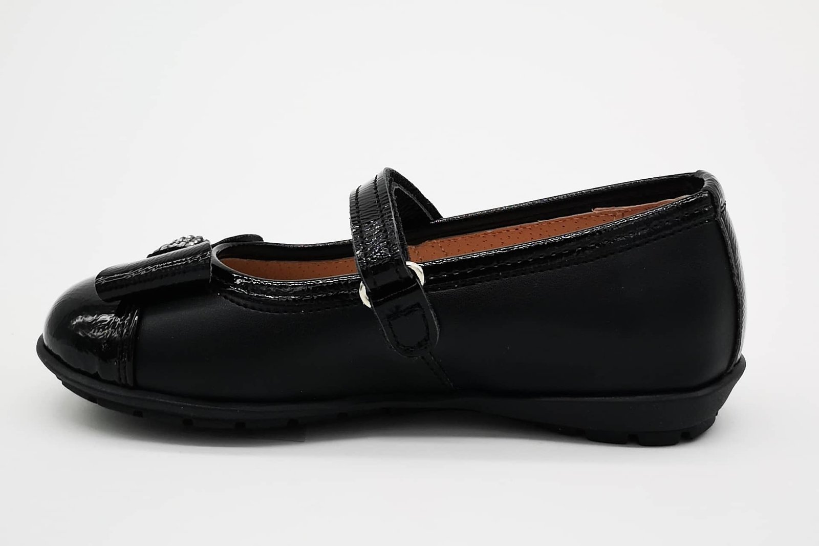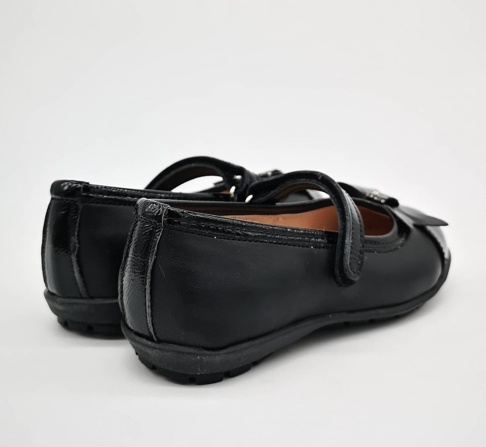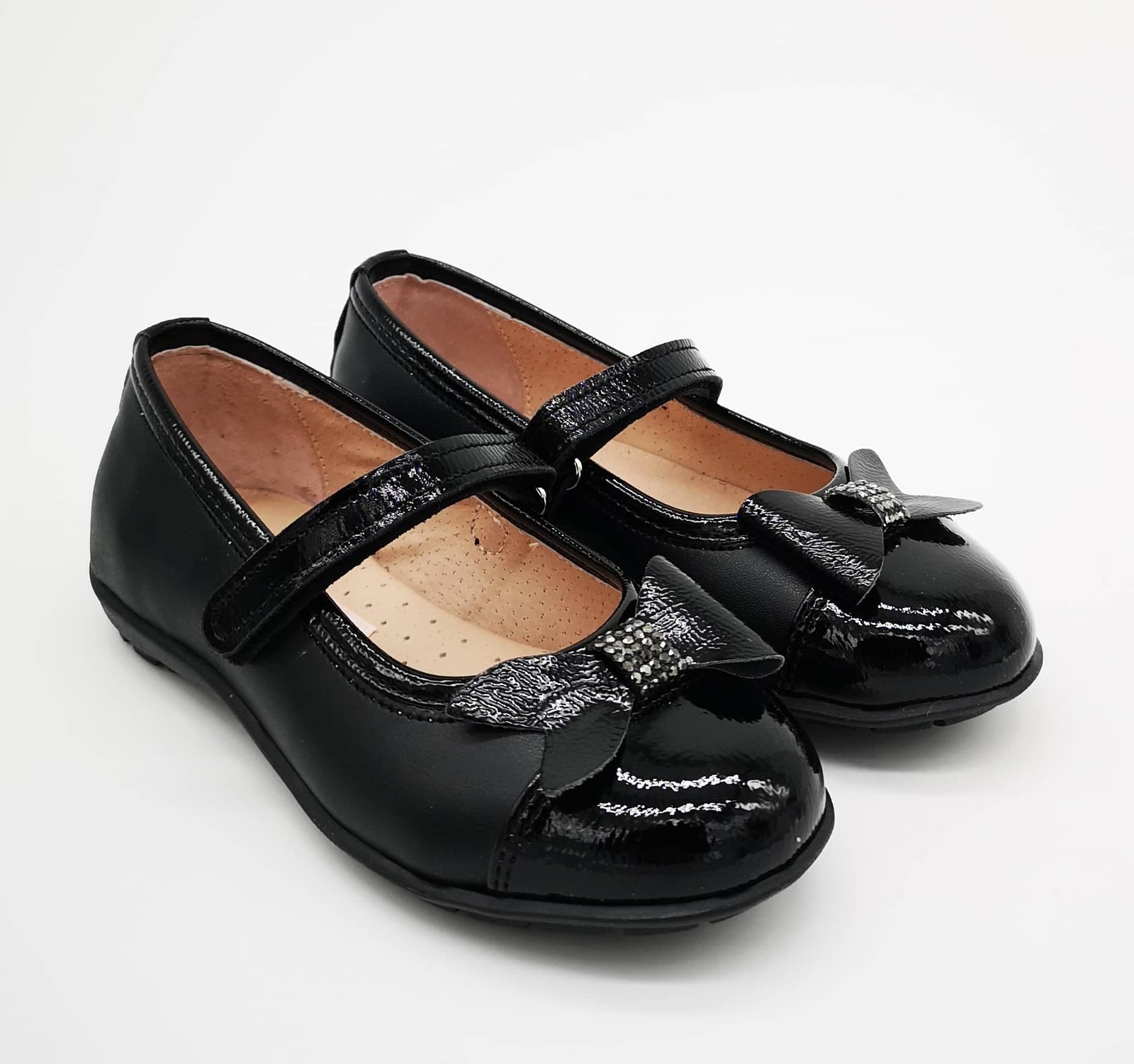 Παιδικές δερμάτινες μπαρέτες σε μαύρο χρώμα με φιογκάκι με στρας.