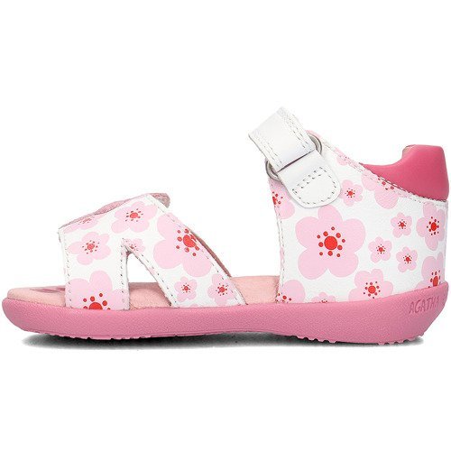 Παιδικά δερμάτινα παπουτσοπέδιλα σε λευκό χρώμα με ροζ λουλούδια.Δερμάτινα εξωτερικά και εσωτερικά,με δερμάτινο,ανατομικό πάτο.Το πέλμα είναι αντιμυκητιακό και αντιμικροβιακό και η σόλα μαλακή και αντιολισθητική.Κλείσιμο με αυτοκόλλητο σε δύο σημεία για εύκολη εφαρμογή.