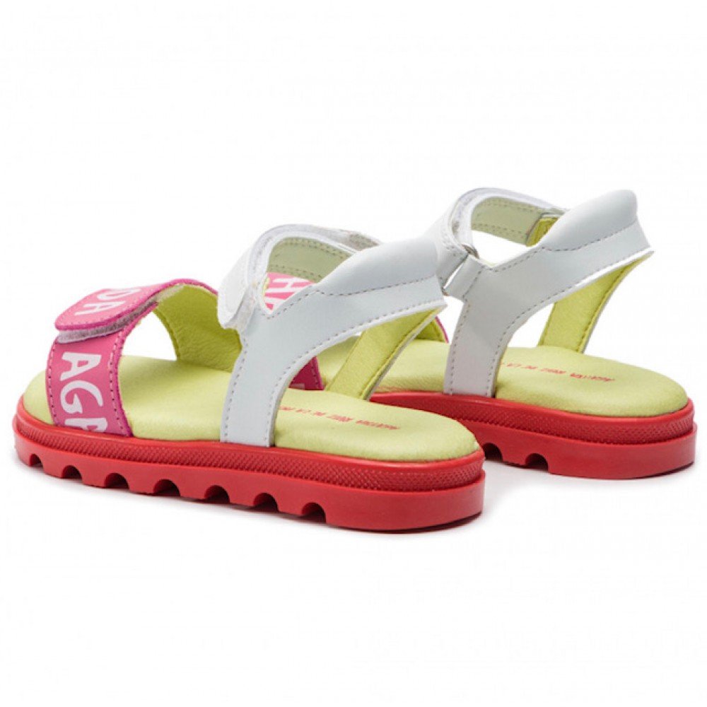 Παιδικά πέδιλα σε λευκό-φούξια χρώμα με λεπτομέρεια κόκκινη σόλα.Δερμάτινα εξωτερικά και εσωτερικά,με δερμάτινο,ανατομικό πάτο.Το πέλμα είναι αντιμυκητιακό και αντιμικροβιακό και η σόλα μαλακή και αντιολισθητική.Κλείσιμο με αυτοκόλλητο σε δύο σημεια για εύκολη εφαρμογή.