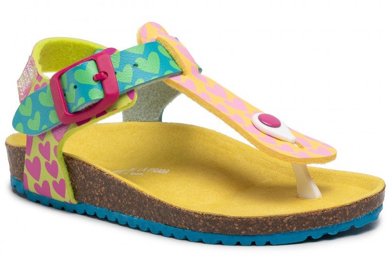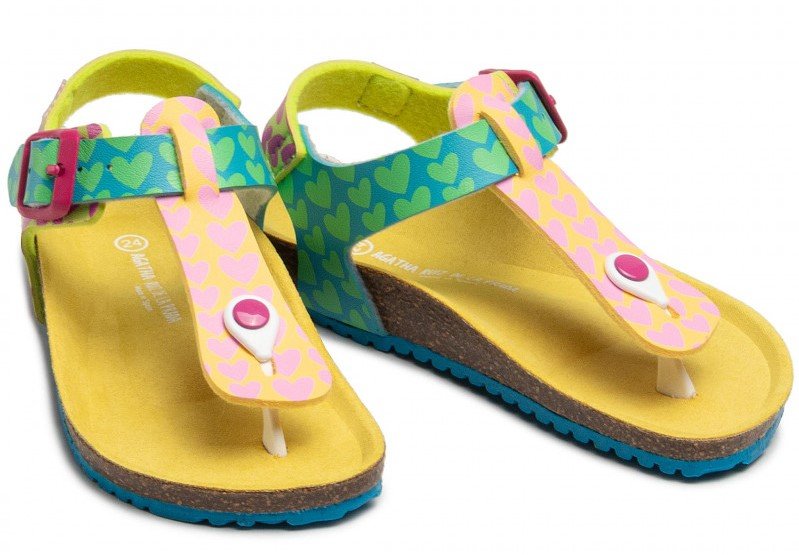 Παιδικά πέδιλα με ανατομικό πέλμα, τύπου σκαφάκι, σε πολύχρωμο σχέδιο με καρδούλες.