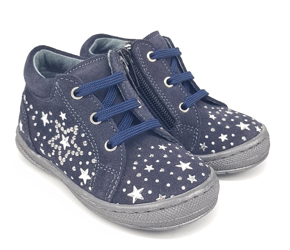 Παιδικά δερμάτινα μποτάκια σε μπλε χρώμα,με ασημί λεπτομέρειες.