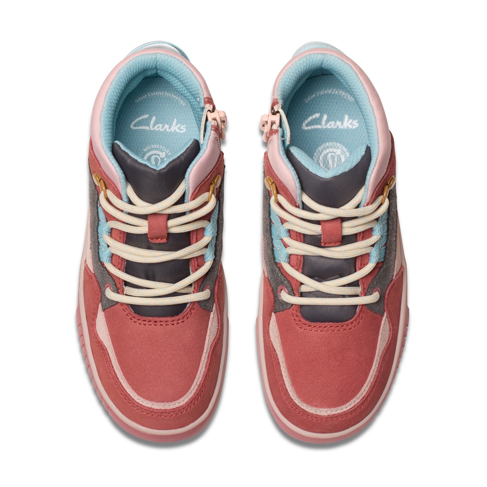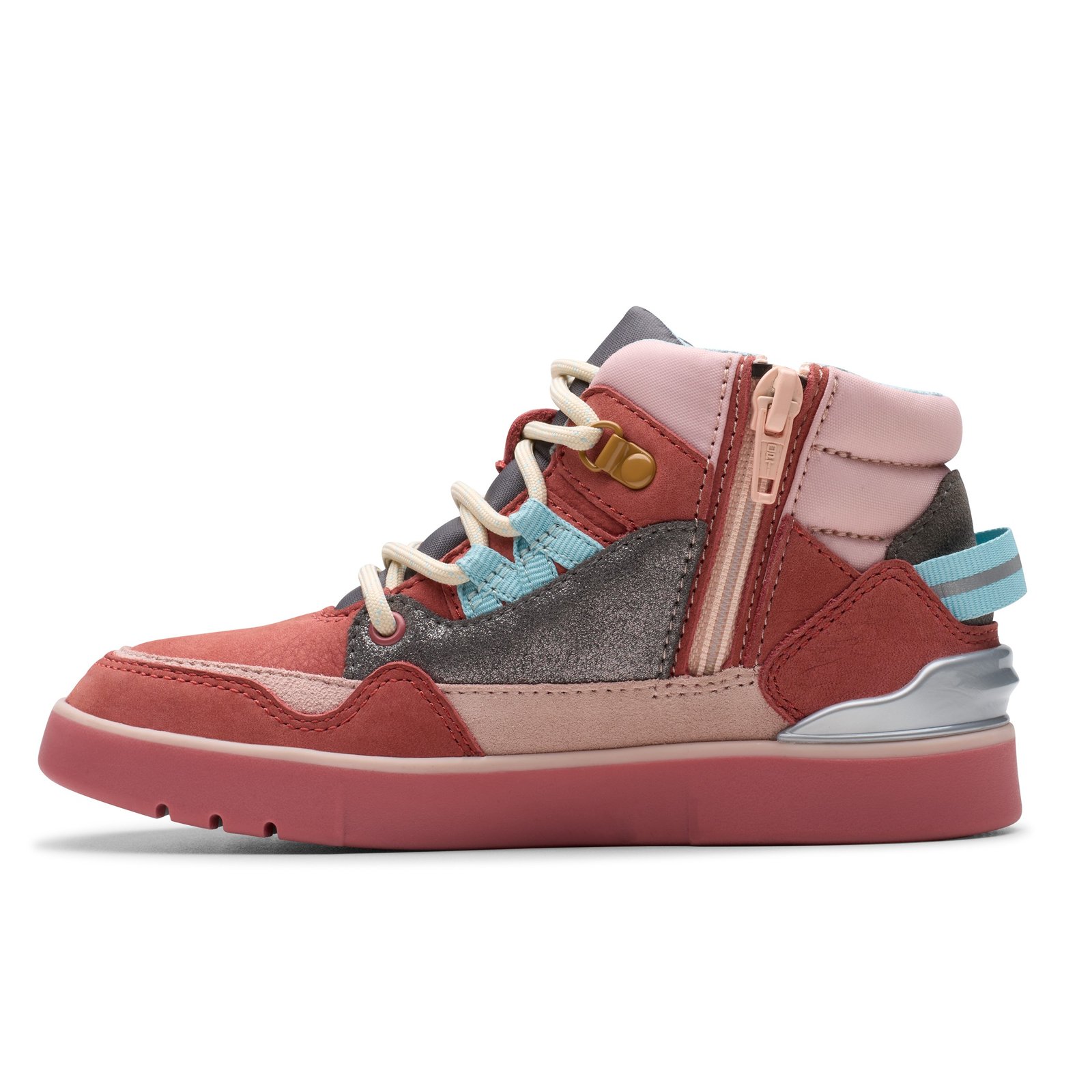 Κοριτσίστικα δερμάτινα μποτάκια, στυλ sneakers, σε ροζ/σάπιο μήλο χρώμα, με λεπτομέρειες σε γαλάζιο & ασημί.