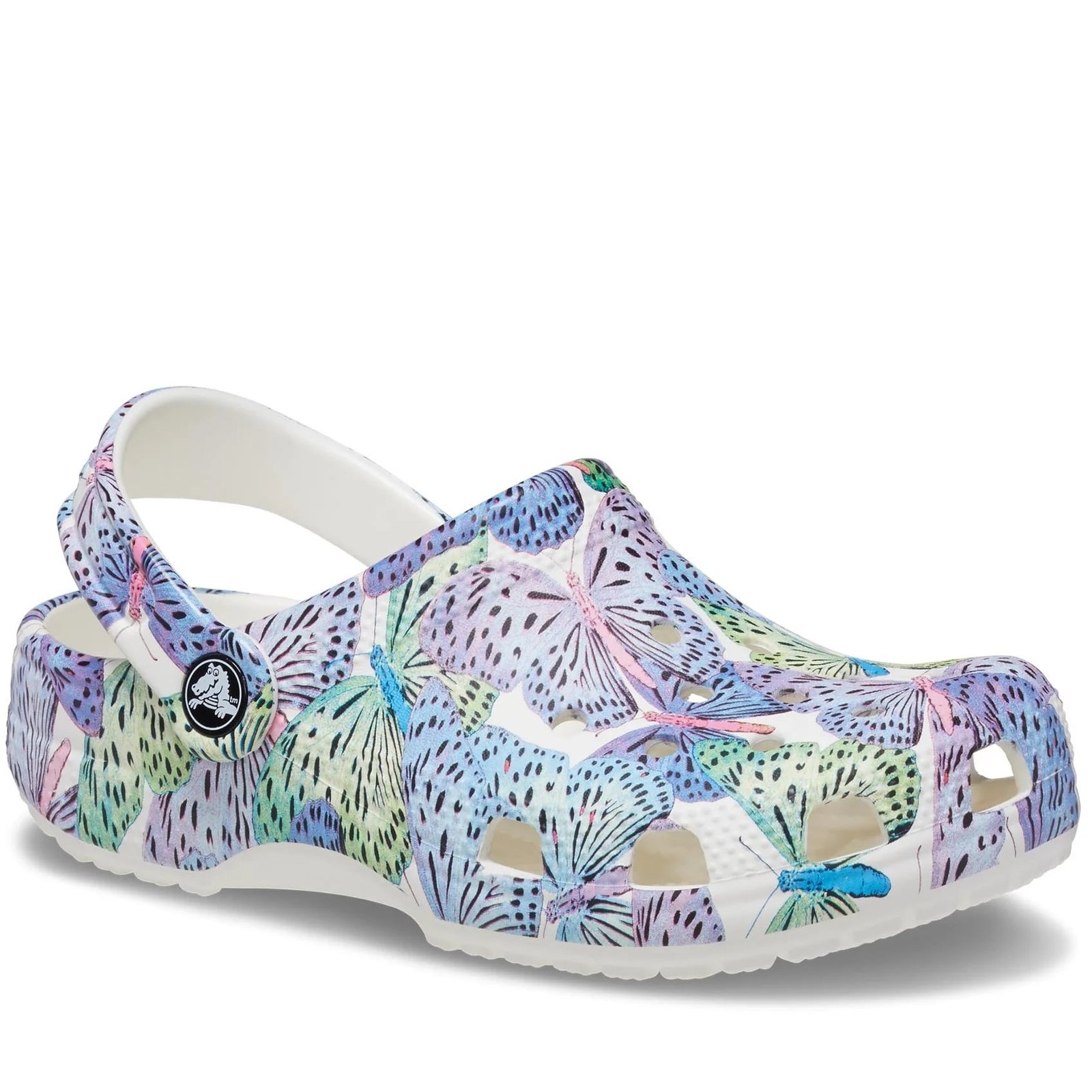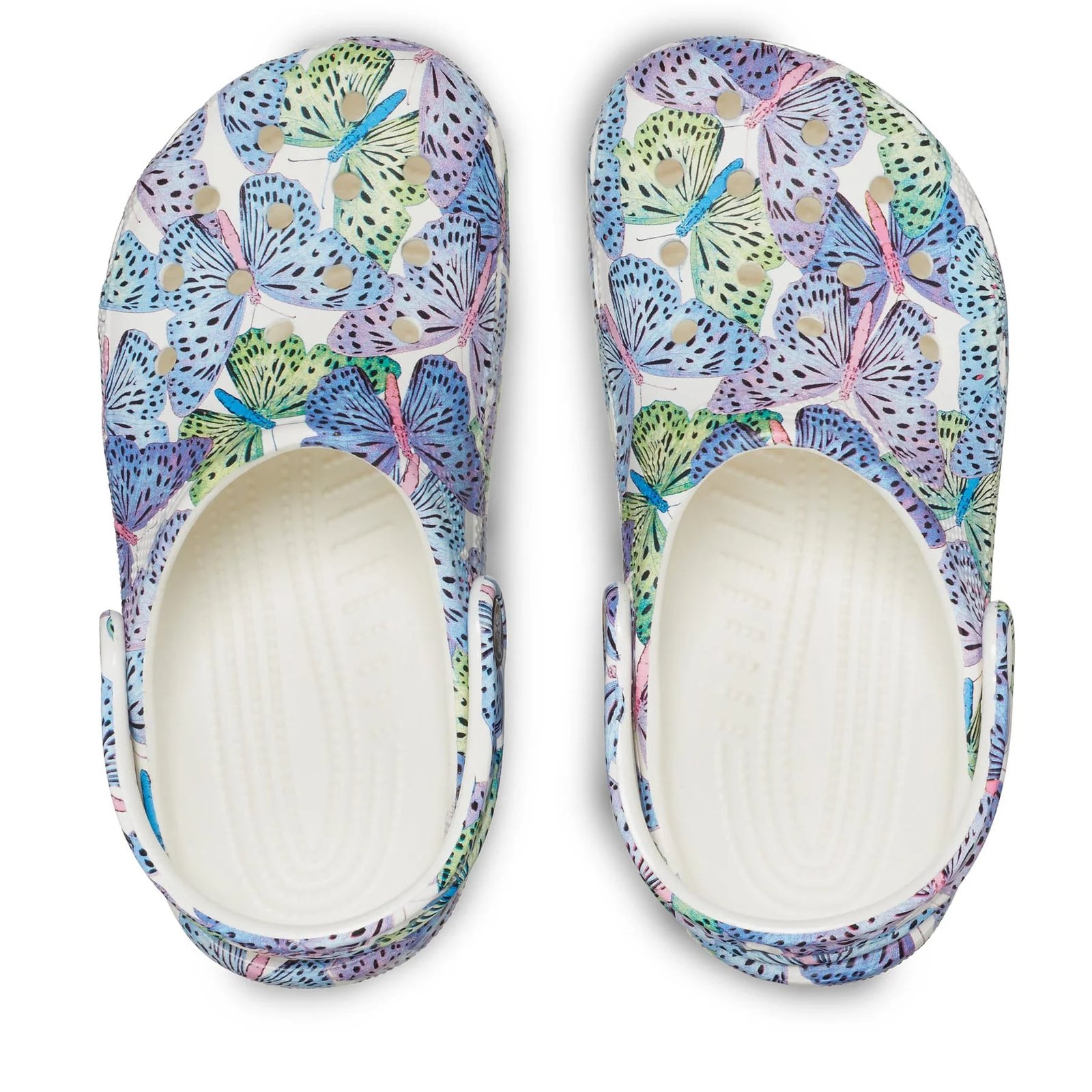 Αδιάβροχα παντοφλάκια/σαμπό σε λευκή βάση με σχέδιο πολύχρωμες πεταλούδες , κατάλληλα για εξορμήσεις στη θάλασσα και για το κολυμβητήριο.