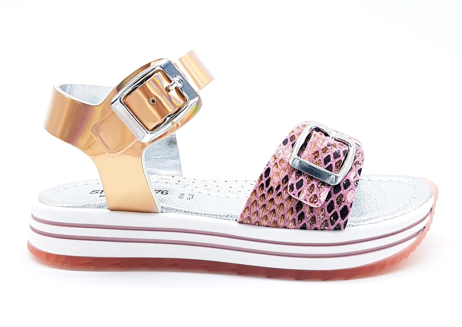 Παιδικά κοριτσίστικα πέδιλα, σε μπρονζέ & μπορντώ χρώμα με σχέδιο τύπου φίδι.
