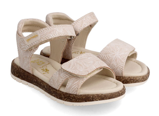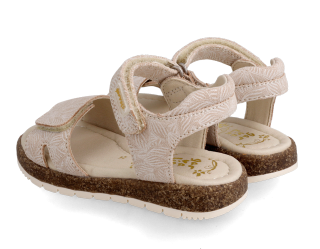 Παιδικά δερμάτινα πέδιλα σε μπεζ χρώμα με διακριτικό σταμπωτό σχέδιο φύλλα.