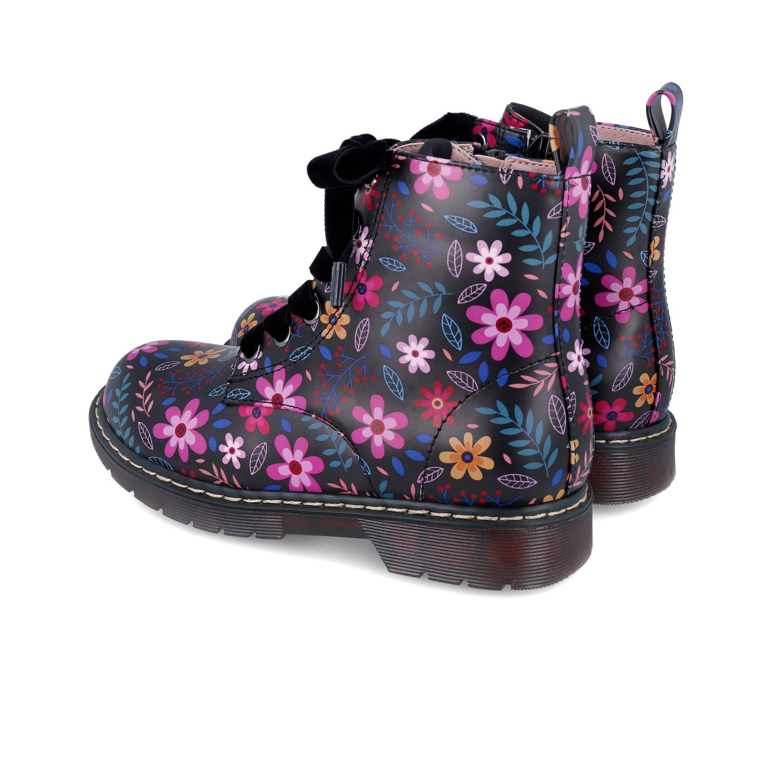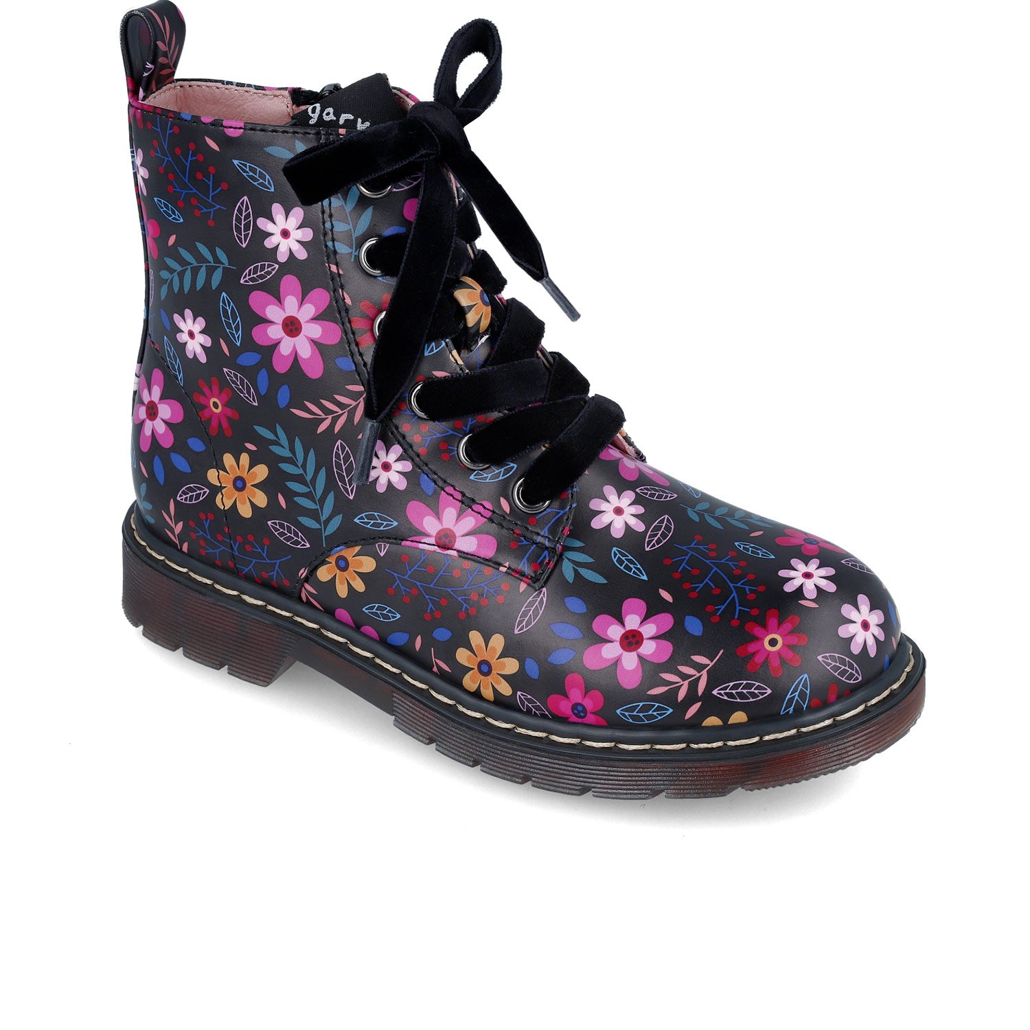 Παιδικά μποτάκια, στυλ αρβυλάκια σε μαύρο χρώμα με μαύρα βελούδινα κορδόνια & υπέροχο λουλουδάτο σχέδιο.