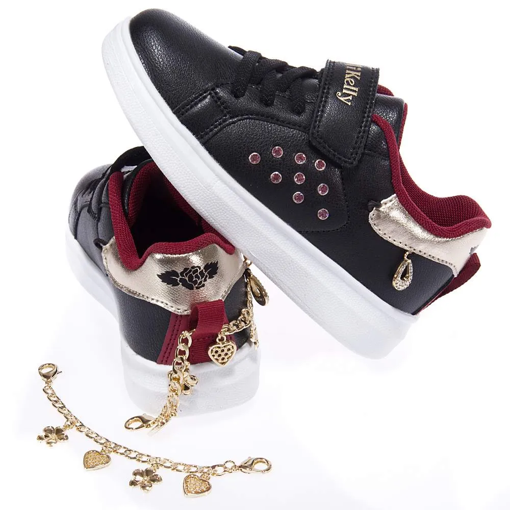 Κοριτσίστικο χαμηλό sneaker σε μαύρο χρώμα με χρυσή αλυσίδα στη φτέρνα, που αποσπάται και γίνεται βραχιόλι!