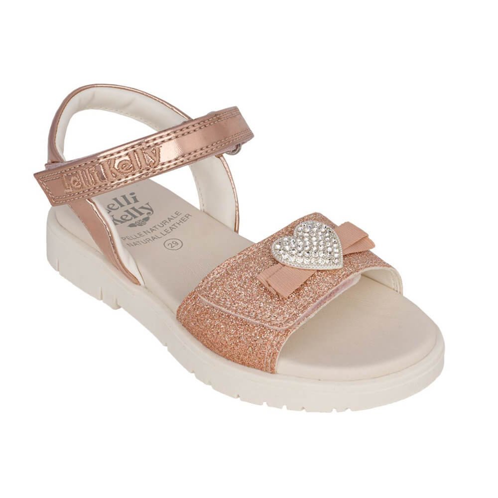 Παιδικά κοριτσίστικα πέδιλα, σε ροζ/χρυσό glitter χρώμα, με κόσμημα καρδούλα.