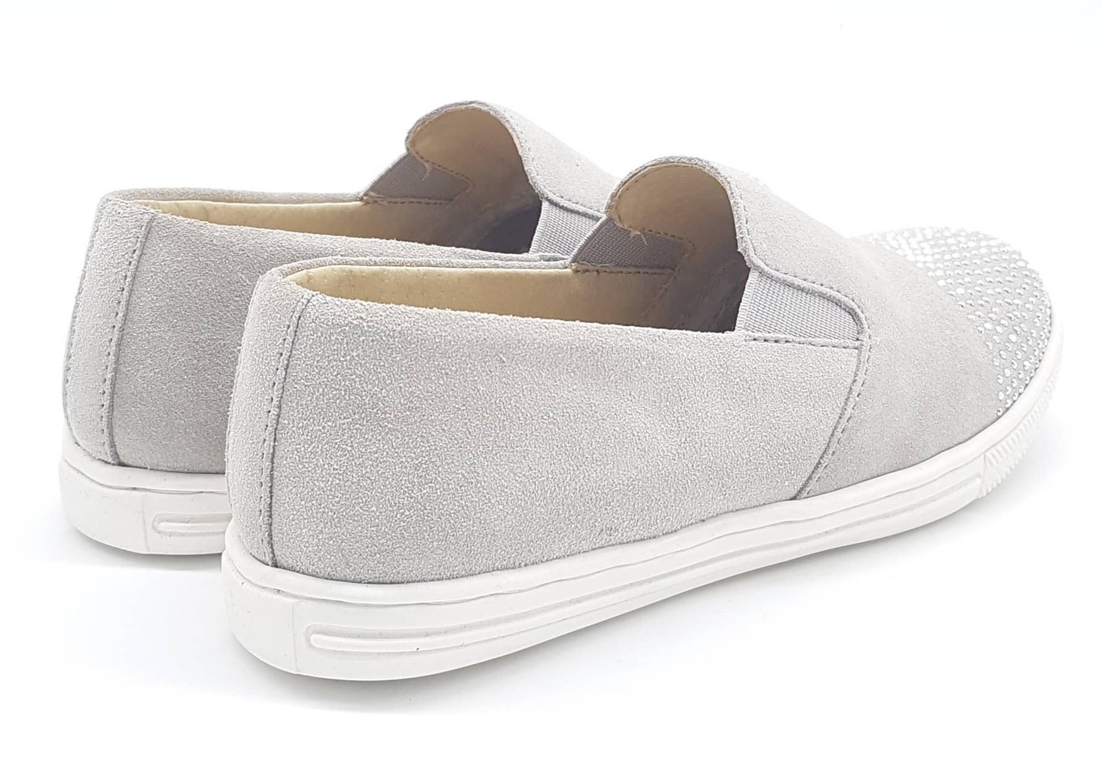 Παιδικά slip-on sneakers σε γκρι χρώμα,με λεπτομέρεια στρας στη μύτη.