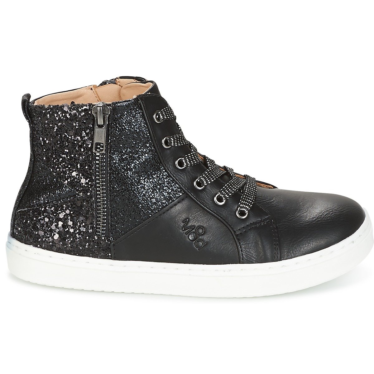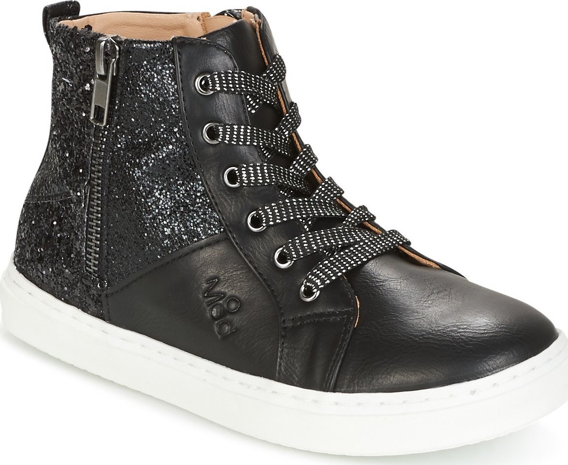 Παιδικά ψηλά μποτάκια σε στυλ sneaker σε μαύρο χρώμα και λεπτομέρεια στρας στην εξωτερική πλευρά.Τεχνόδερμα εξωτερικά,με δερμάτινο ανατομικό πέλμα και μαλακή σόλα.Κλείσιμο με κορδόνι και φερμουάρ.