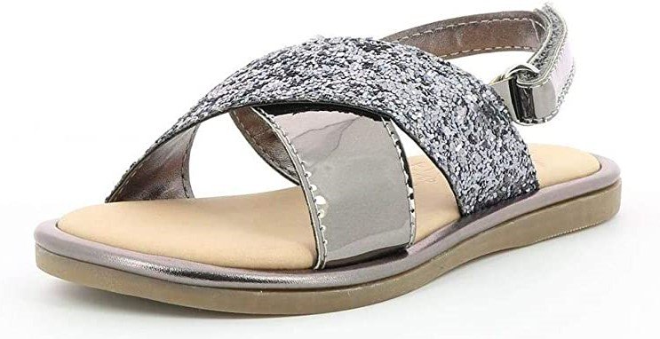 Παιδικά δερμάτινα πέδιλα σε ασημί χρώμα με glitter.Κατασκευασμένα από οικολογικό δέρμα, με δερμάτινο ανατομικό πέλμα και μαλακή αντιολισθητική σόλα για σταθερά βήματα.Κλείσιμο με λουράκι με velcro στον αστράγαλο.