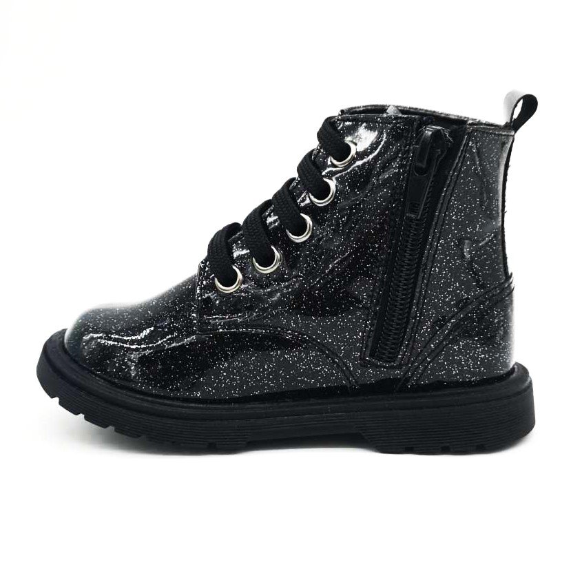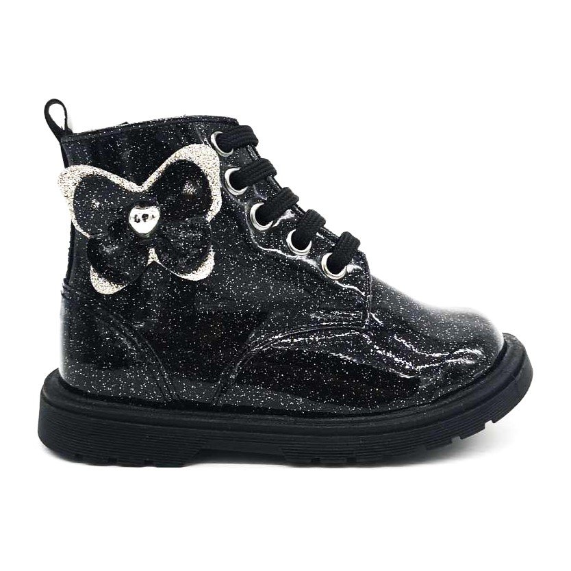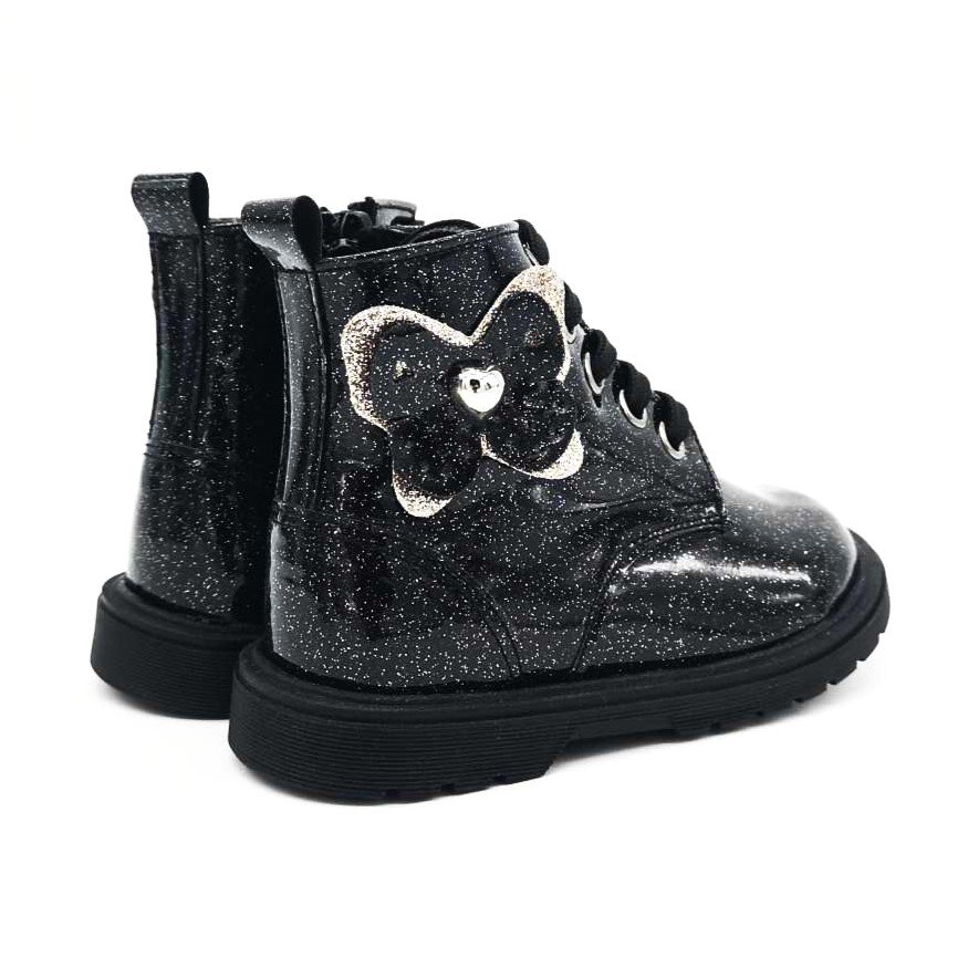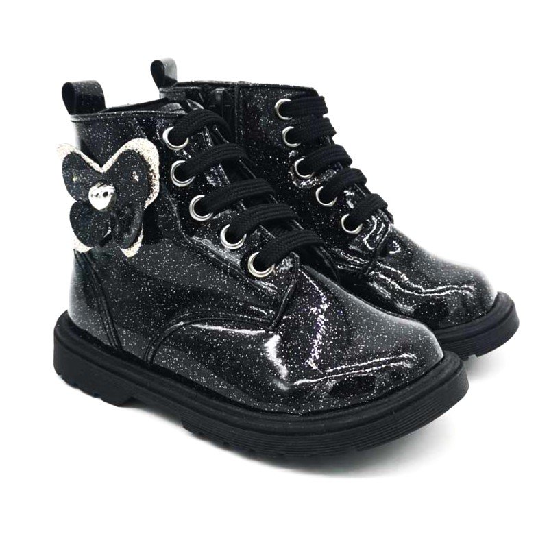 Παιδικά bebe δερμάτινα μποτάκια, στυλ αρβυλάκια, σε μαύρο λουστρίνι χρώμα, με διακριτικό glitter & χρυσή πεταλούδα στο πλάι.